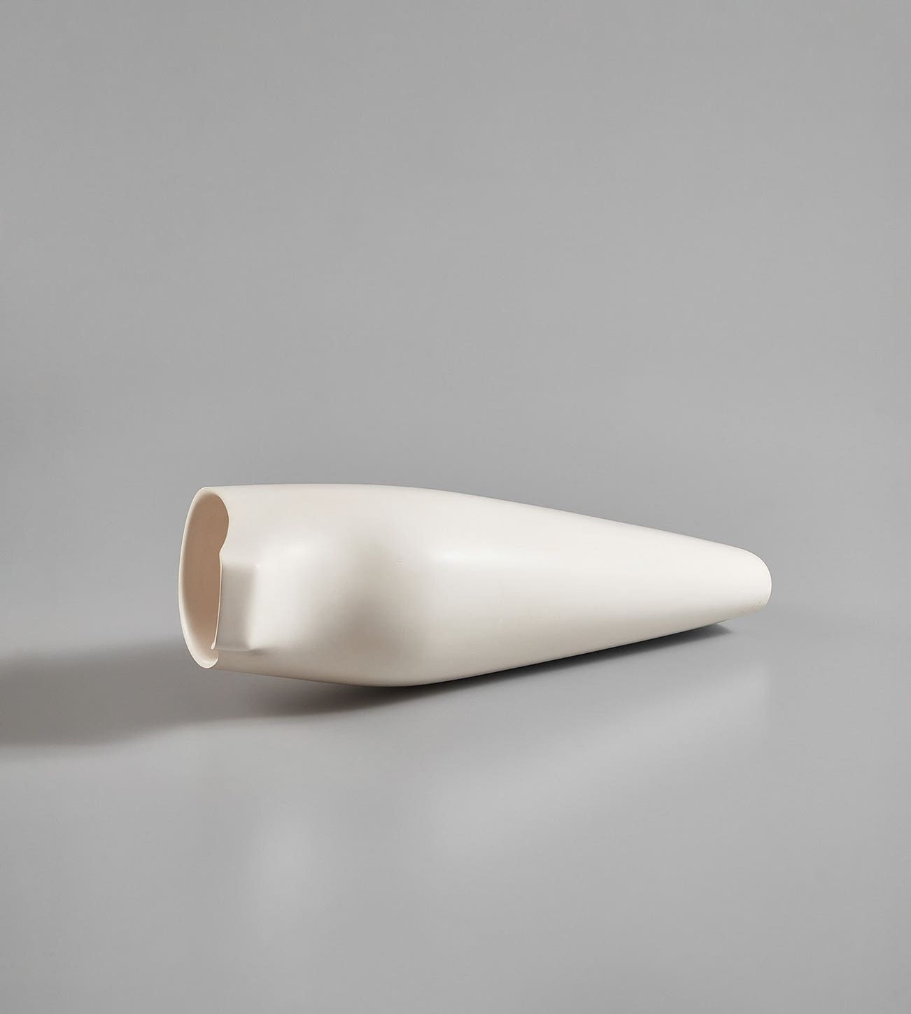 Nicholas Rena studied architecture before studying ceramics, an influence visible in the precision of form and surfaces of his work. The simplicity with which Rena combines a familiar form (a vessel) with an abstract form (a vessel lying on its side, thus rendering it functionless), immediately questions its intended purpose. This mystery is emphasized by the polished smoothness of the surface, leaving the focus of the work to the space it inhabits and displaces. Rena’s work is held in the permanent collections of the Louvre, Paris and the Victoria & Albert Museum, London.