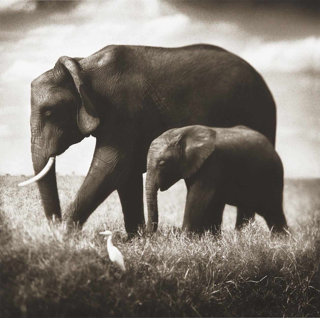Elephant Mother and Baby Walking in Tandem, Maasai Mara