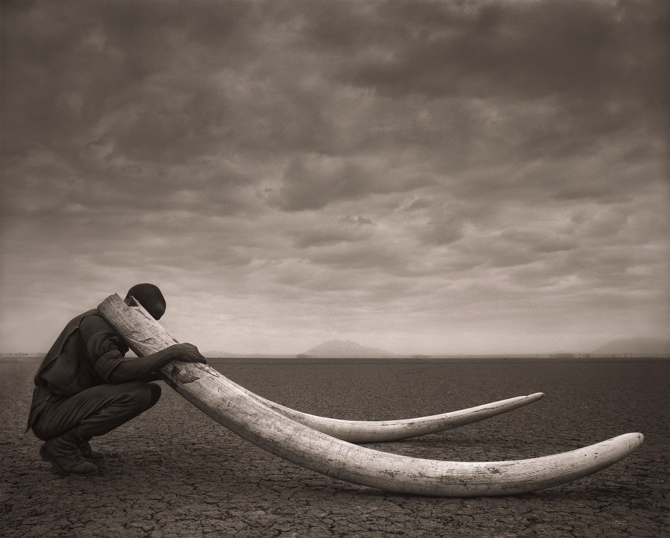 Ranger With Tusks of Killed Elephant