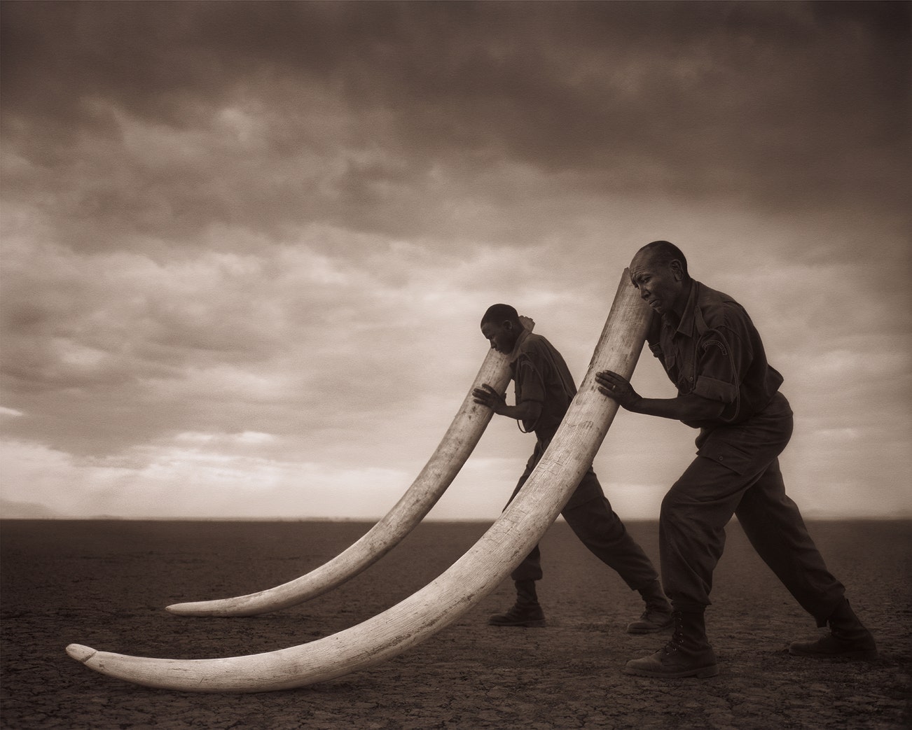 Two Rangers with Tusks of Killed Elephant, Amboseli