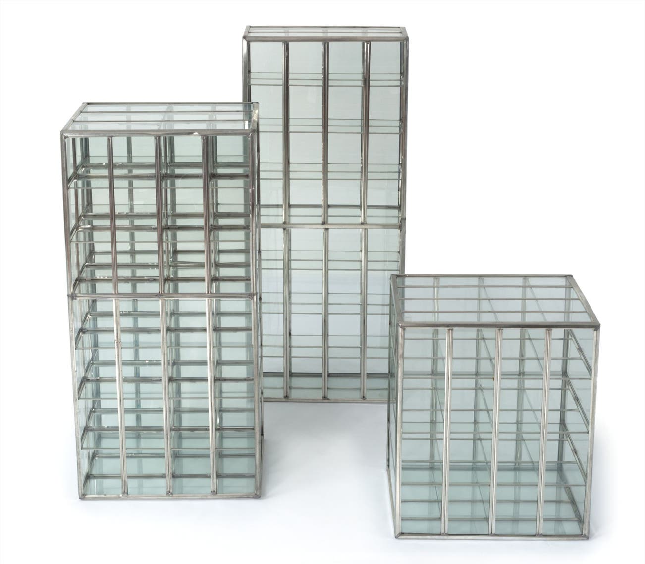 metal and glass sculptures, in 3 parts