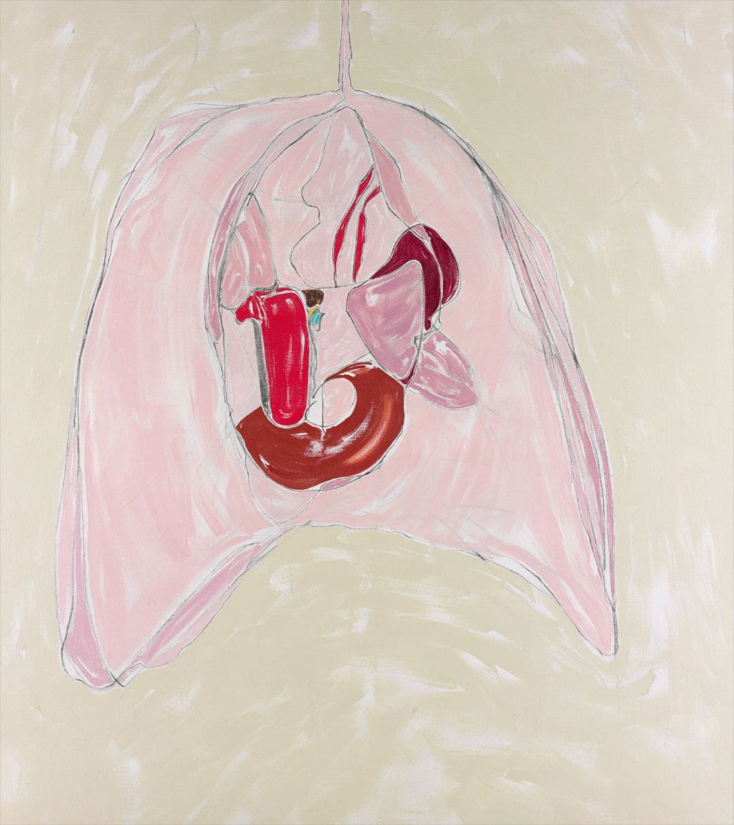Initialled, titled and dated '"SPILLED GUTS" 1999 nht 99' on the reverse.