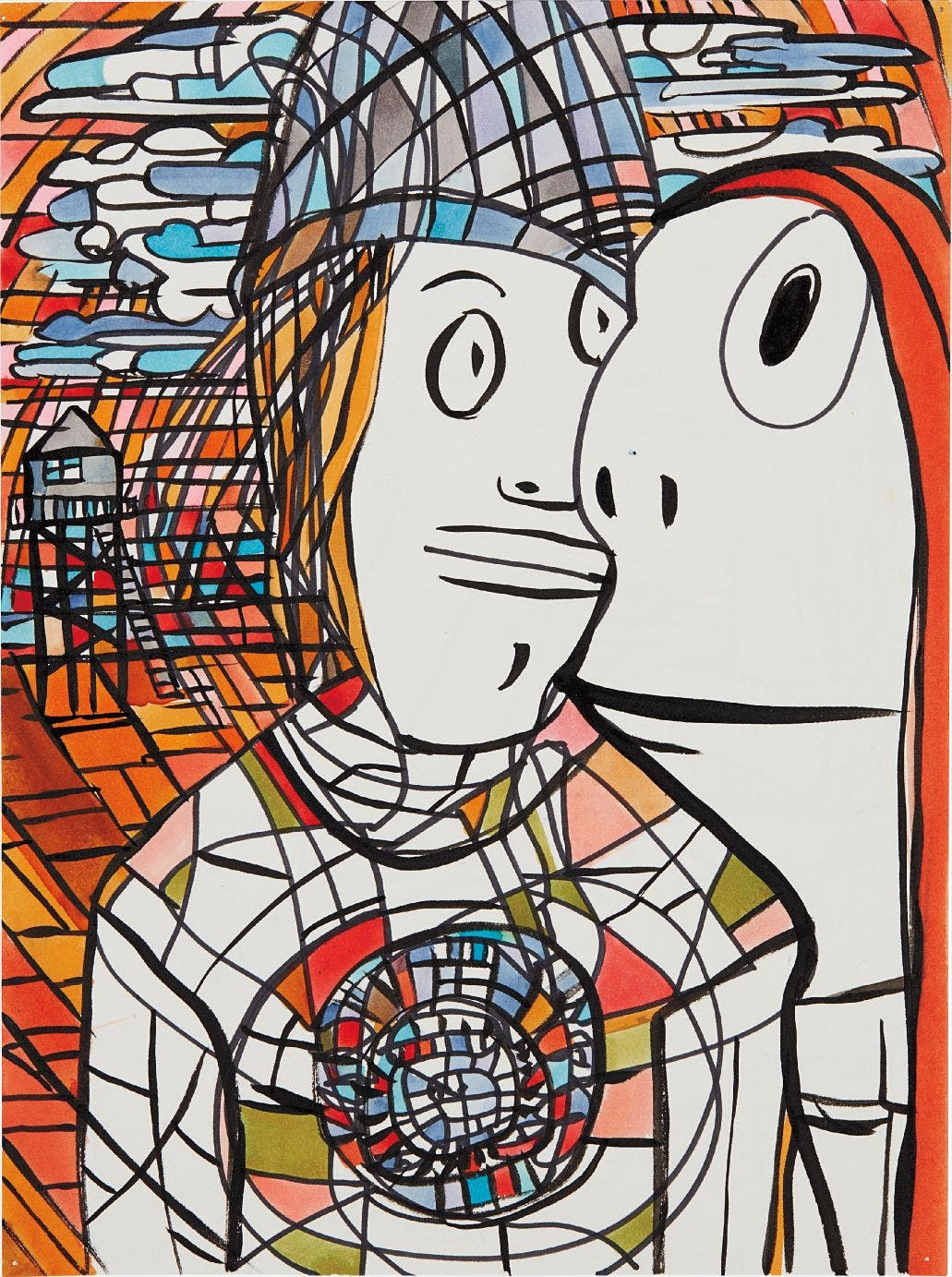 ink, marker and watercolor on paper