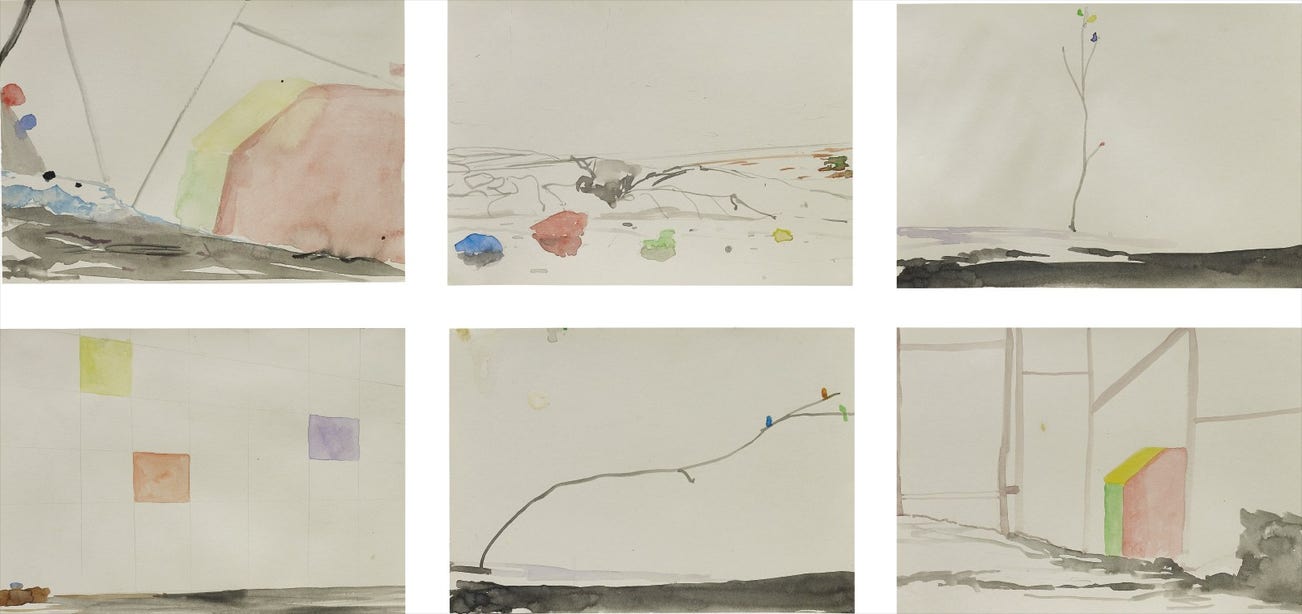 watercolour on paper, in 6 parts