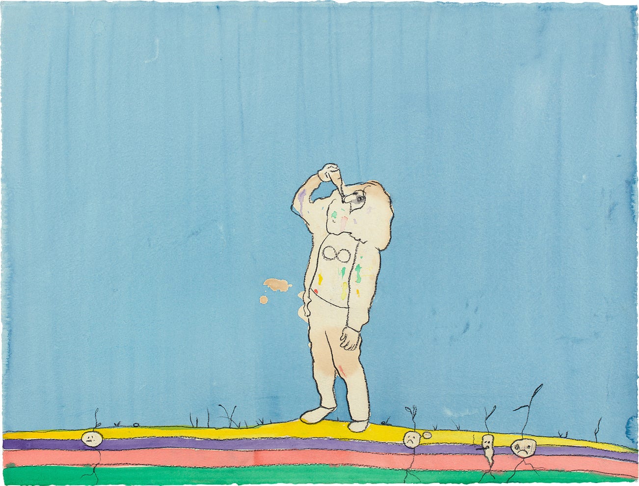 signed, titled, inscribed and dated "Nigel Cooke Drinker 2007 watercolour and conté on paper" on the reverse