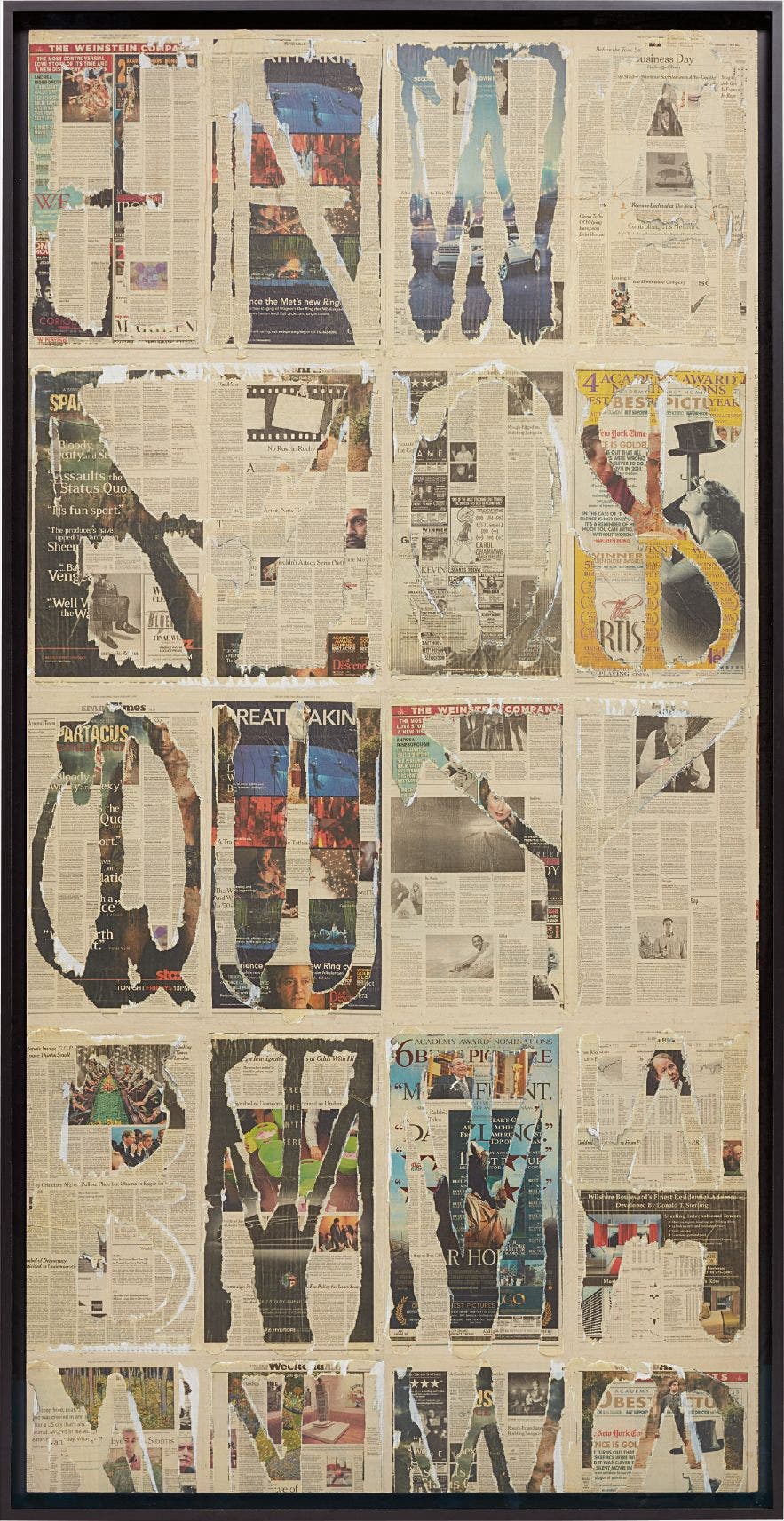 newsprint and acrylic on aluminum composite panel