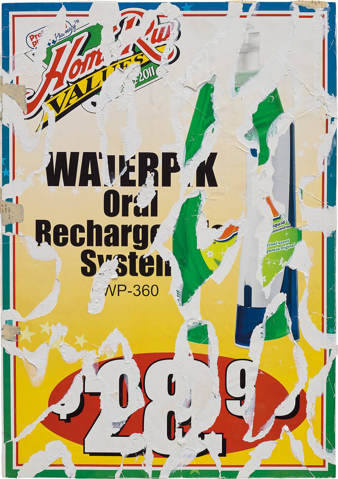 paper collage and acrylic on honeycomb paperboard mounted to aluminium board