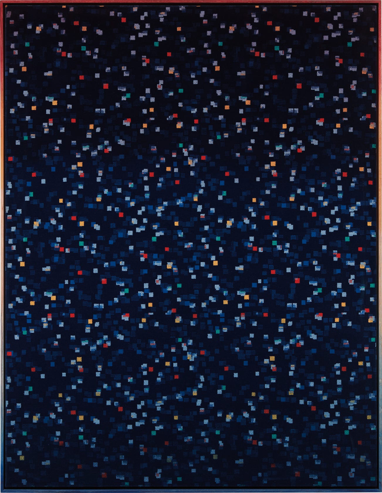 furniture fabric, dye, ink, stain, pigment and bleach, in artist's frame