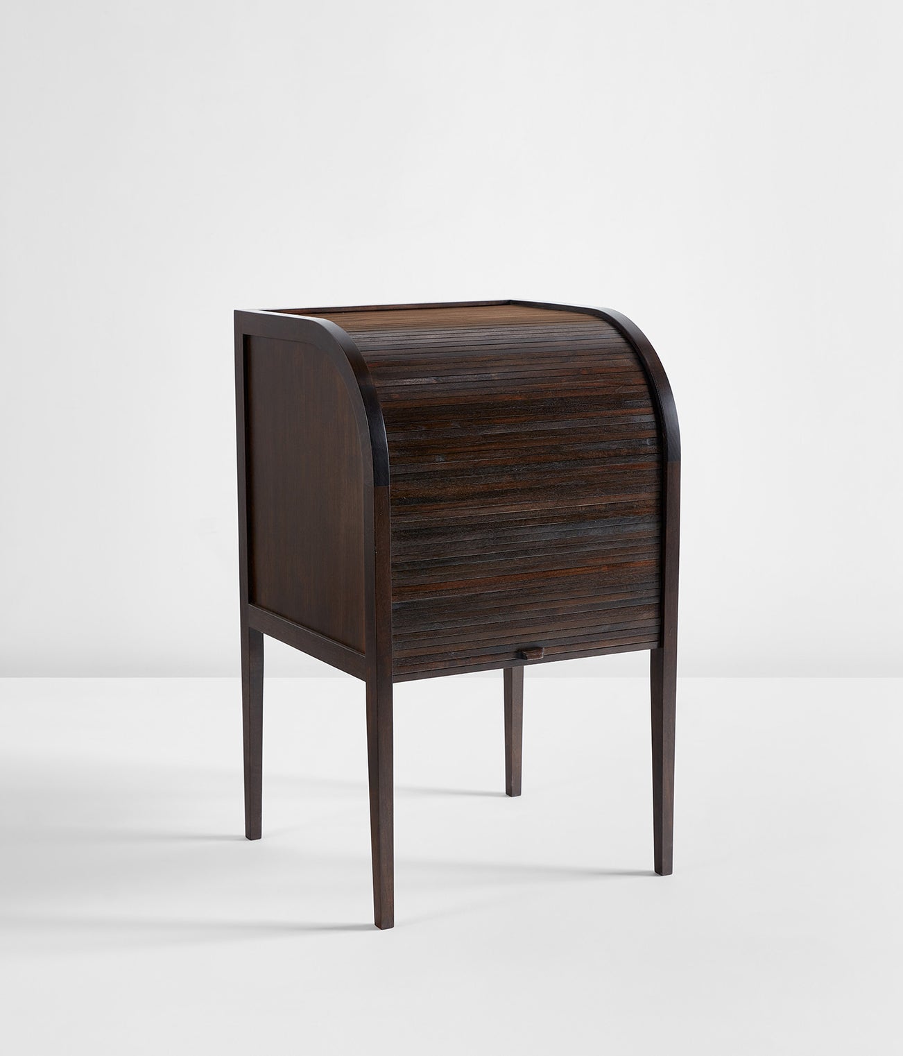 Both trained as architects, Carrie Norman and Thomas Kelley founded the design collaborative Norman Kelly in 2012. They call themselves “furniture appropriators” who believe “architects have designed enough chairs” and have confined themselves to impersonating venerated styles of the past. In their “Young Americans” pieces, two well-known styles—Chippendale and Federal—meld together; they have created an armchair which subtly impersonates a roll top desk like those popular after the American Revolution (lot 51) as well as a fixed tilt-top mirror table in which the reflective surface of the polished mahogany functions as a mirror (lot 52). The designers claim, “like impersonations, our objects are furniture-like; doubles who cause style, type, and function to change places with each other.”