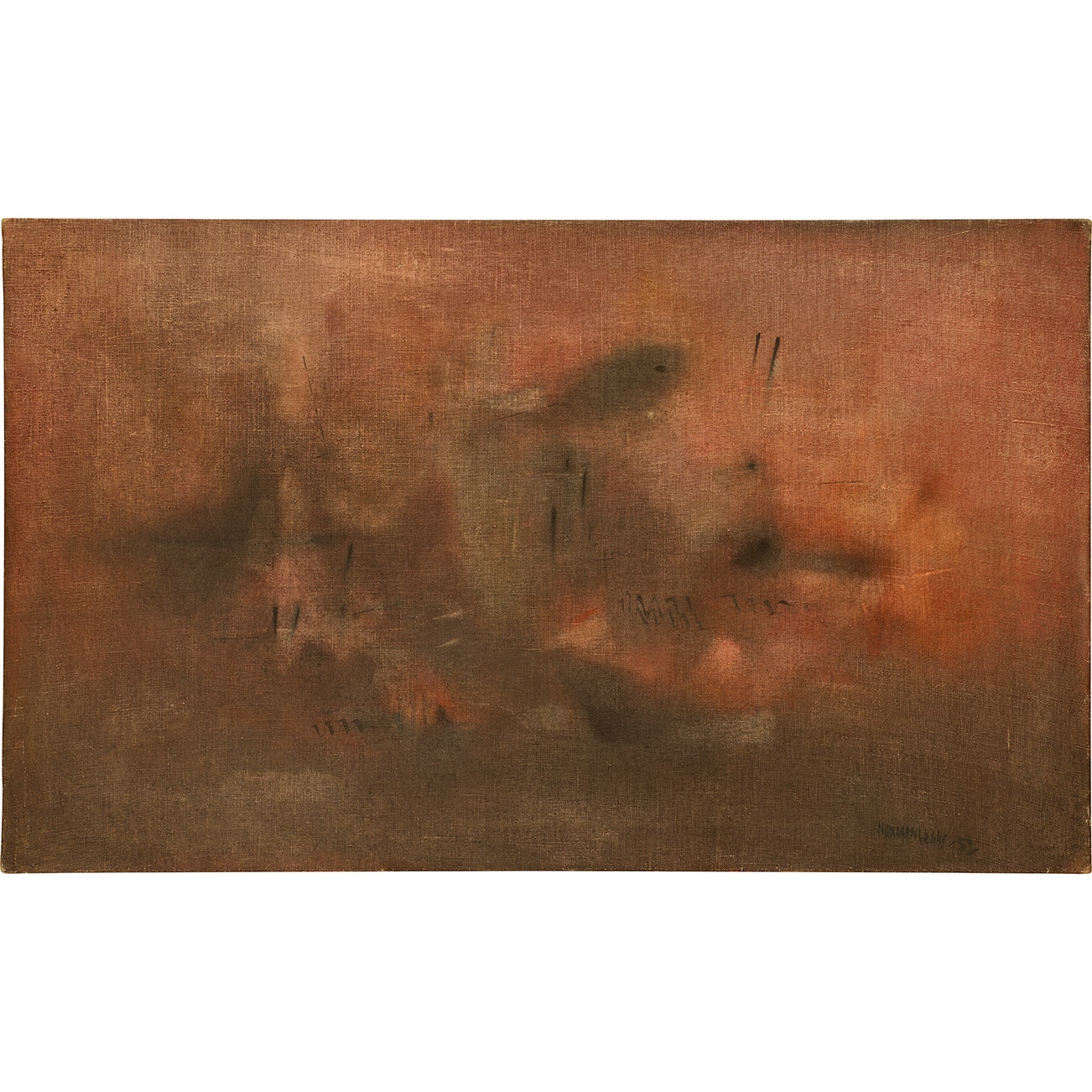 signed and dated "Norman Lewis '52" lower right; titled "NIGHT VISION" on the stretcher