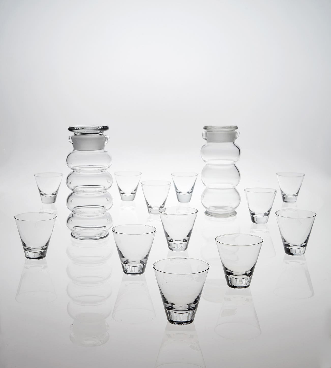 Two cocktail mixers and twelve cocktail tumblers, model nos. 2544 and 2744