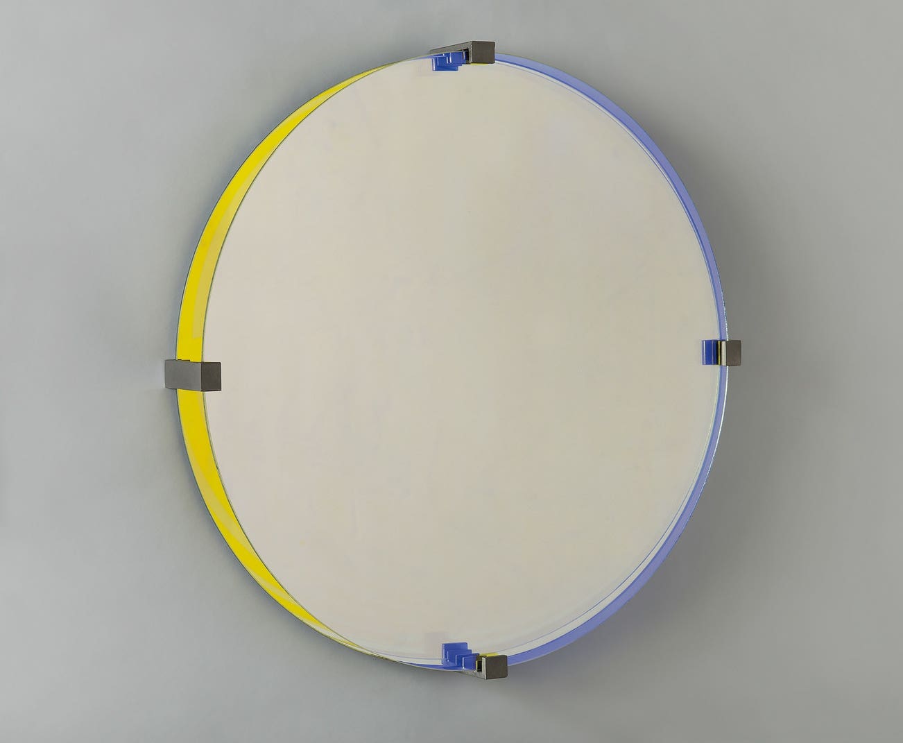 mirror, transparent colored glass and steel
