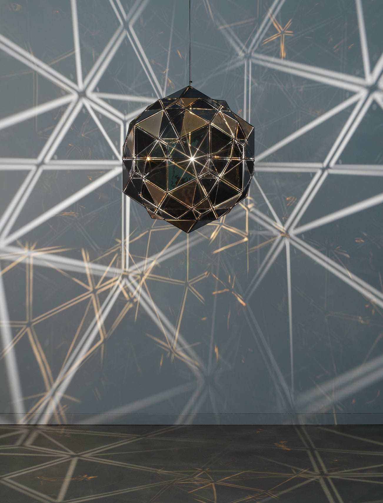 colored glass, gold, stainless steel, paint and LED lights