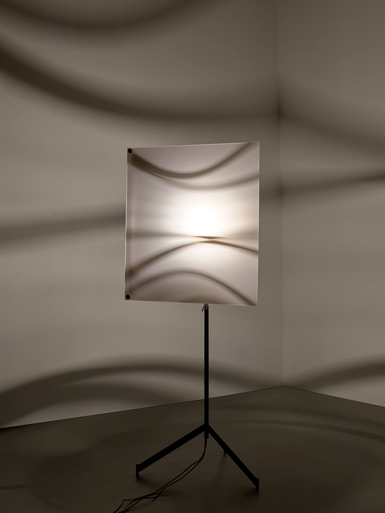 translucent acrylic glass, stainless steel, halogen bulb, motor and tripod