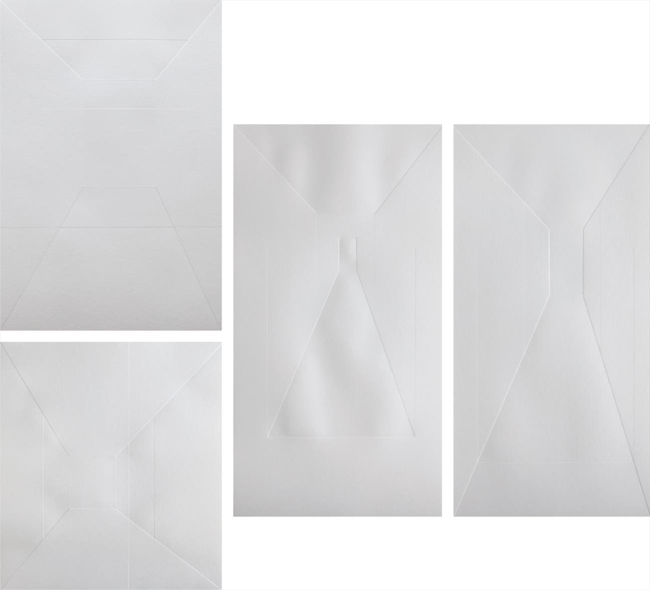 Four embossments, on Hanhnemühle Bütten paper, the full sheets,