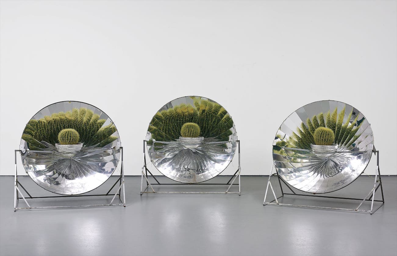 3 aluminium reflectors, cacti, terracotta pots, foil and soil