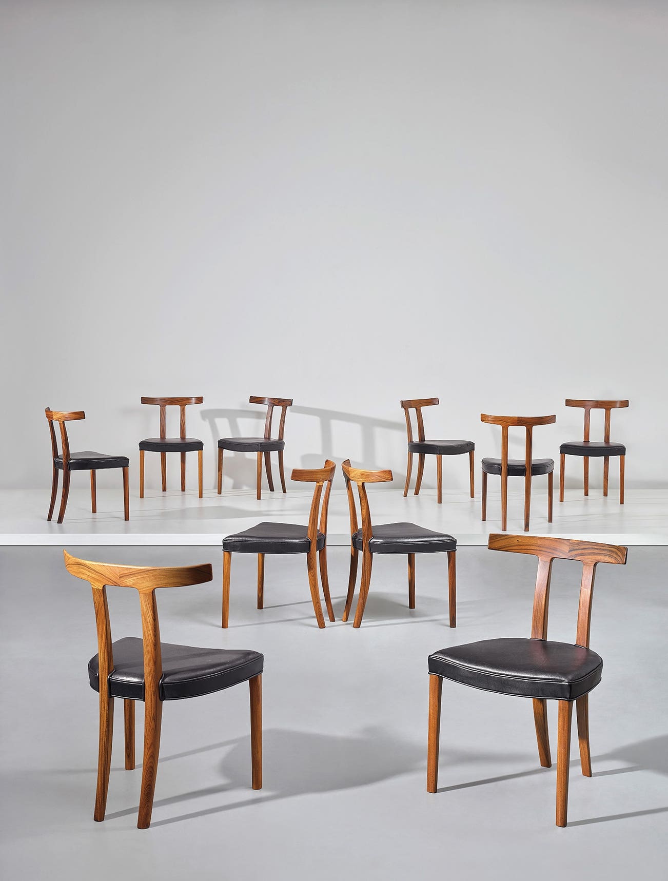 Executed by cabinetmaker A.J. Iversen, Copenhagen, Denmark. Underside of each with manufacturer's paper label Snedkermester/A. J. Iversen/København.