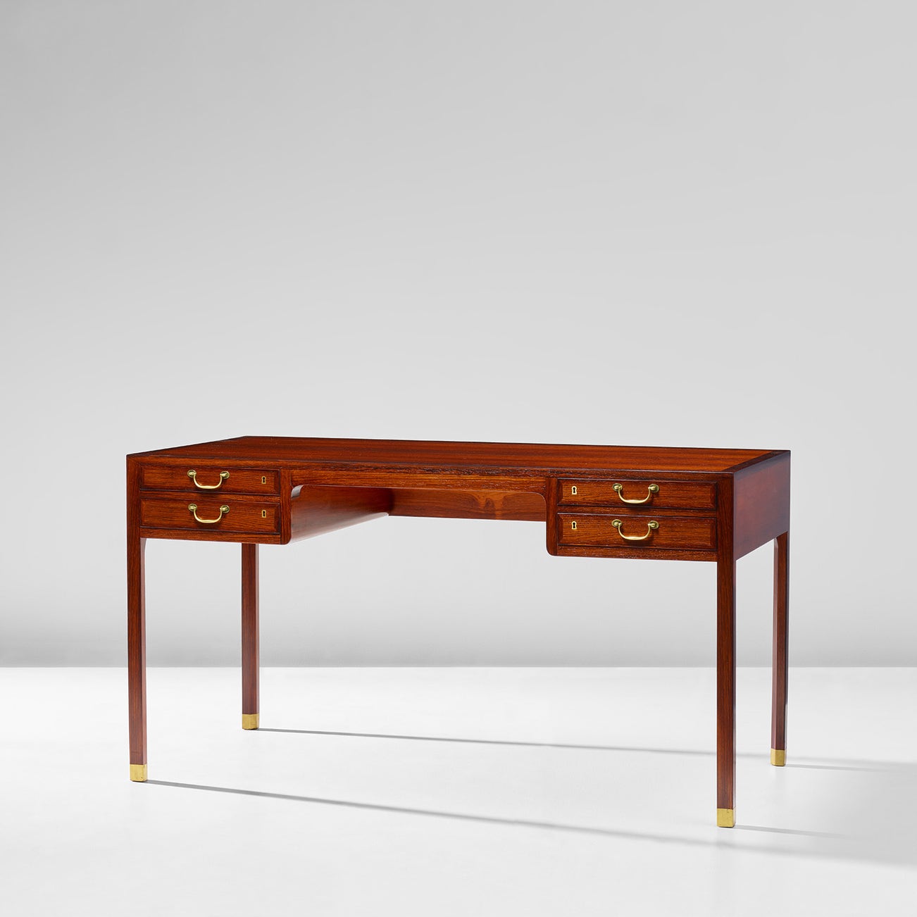Brazilian rosewood-veneered wood, Brazilian rosewood, brass.