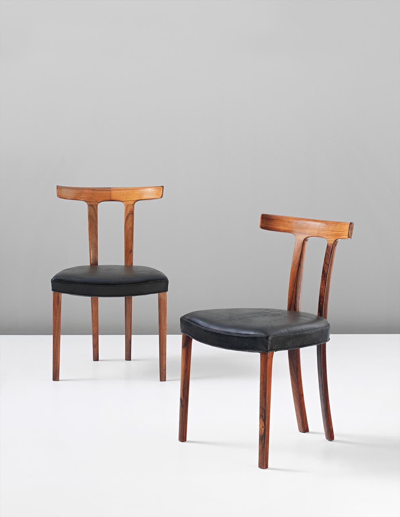 Produced by cabinetmaker A.J. Iversen, Denmark. Underside of each chair with manufacturer's paper label Snedkermester A.J. Iversen Kóbenhavn.