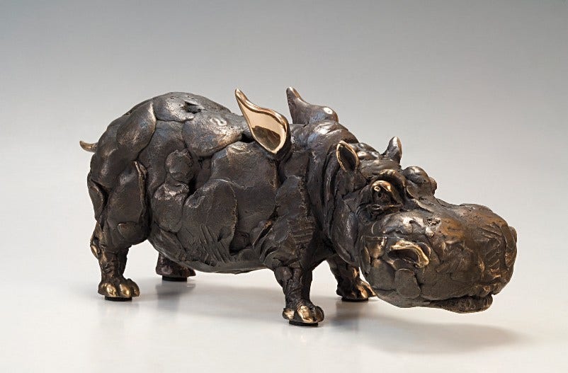 An edition of Oleg Pinchuk's Rozita sculpture is housed in the collection of the famous Latin American writer and winner of the Nobel Prize for Literature in 2010, Mario Vargas Llosa. A leading novelist of his generation, Mario Vargas Llosa wrote the following in a letter to Pinchuk: “…. awesome winged hippopotamus, which now occupies the exclusive place in my home. Undoubtedly, this is one of the most beautiful hippopotami in my huge collection I have assembled for the recent years…. I really like the figures you create of animals, plants, fish and people. All of them are a combination of fantasy and realism, with a touch of archness and humour, giving your works a special, unique style of yours."