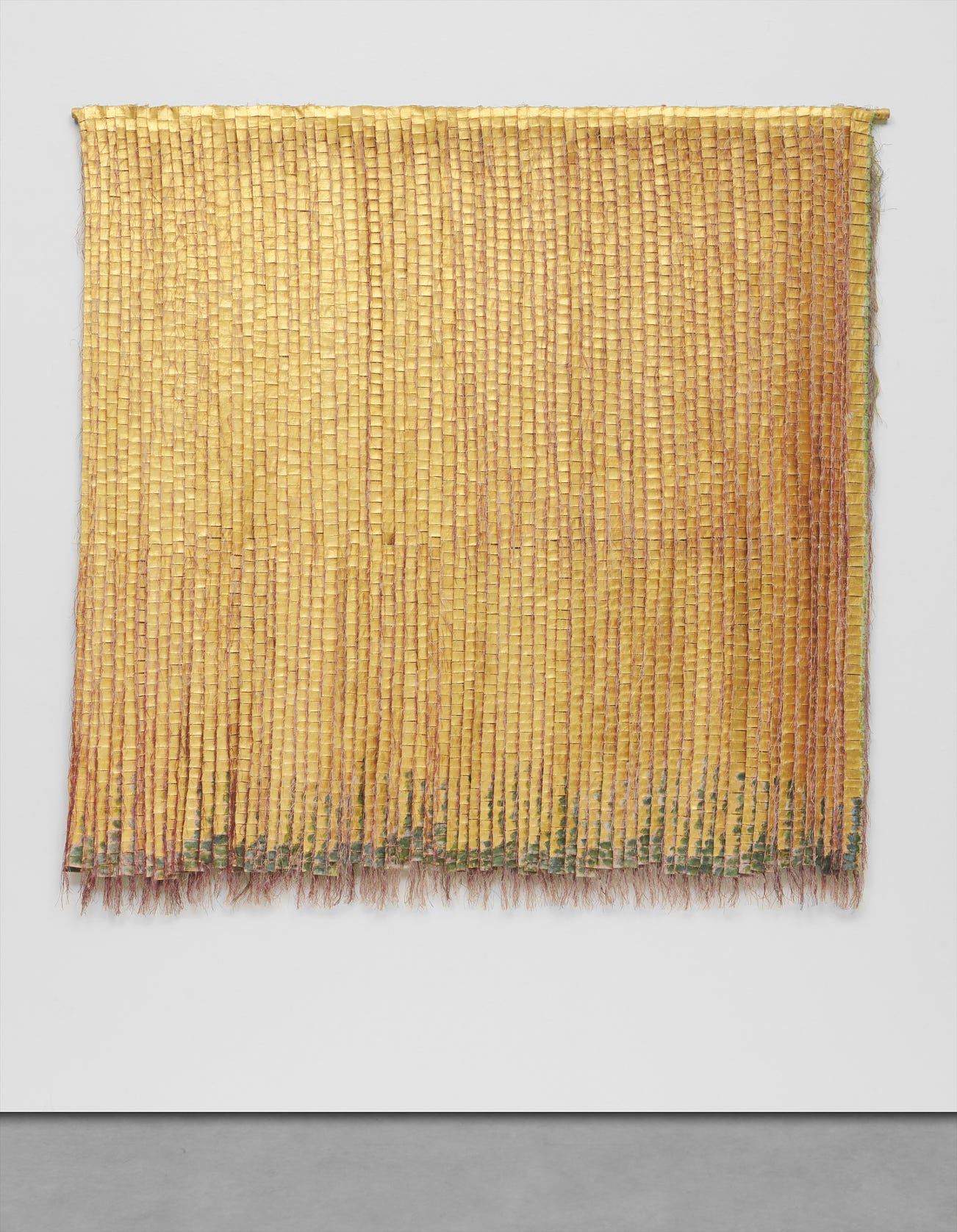 Colombian | 1932At age 22 with a degree in architectural design, Olga de Amaral moved from Bogotá to the United States where she studied fiber art at the Cranbrook Academy of Art in Michigan. She returned to Colombia in 1955, and in 1956 she and her husband, Jim Amaral, opened a workshop of hand-woven textiles. De Amaral's distinctive large-scale abstract woven pieces are often covered in gold and silver leaf, lending them a shimmering, almost sculptural quality in contrast to the feeling of a tapestry. Her richly textured pieces evoke the varied natural landscapes of Colombia as well as ancient pre-Columbian gold artifacts. The artist's architectural background is evident in the precise sculptural quality of her works, but de Amaral says her craft is driven by emotion and that she does not plan for particular patterns to emerge.
