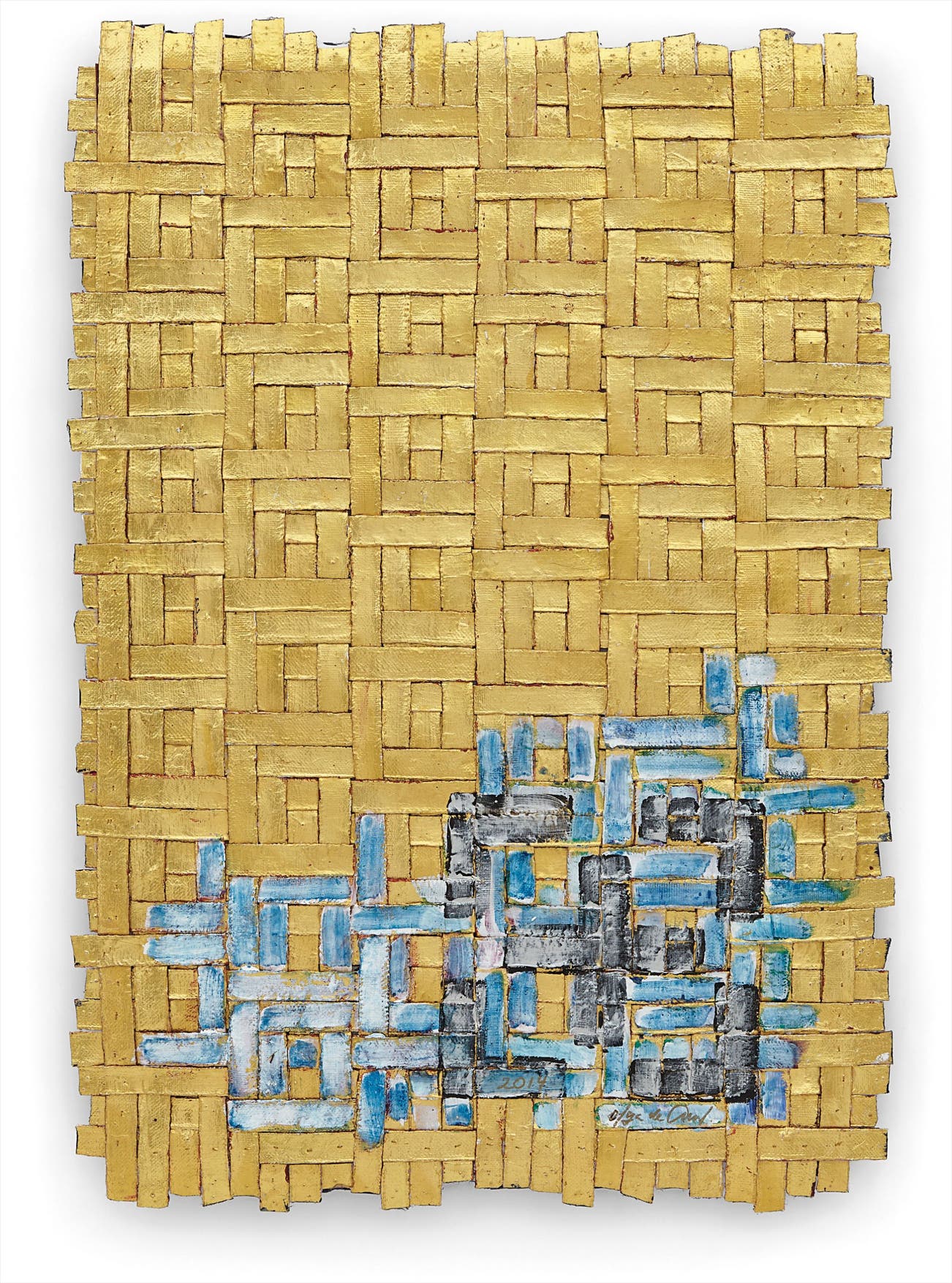 Colombian | 1932At age 22 with a degree in architectural design, Olga de Amaral moved from Bogotá to the United States where she studied fiber art at the Cranbrook Academy of Art in Michigan. She returned to Colombia in 1955, and in 1956 she and her husband, Jim Amaral, opened a workshop of hand-woven textiles. De Amaral's distinctive large-scale abstract woven pieces are often covered in gold and silver leaf, lending them a shimmering, almost sculptural quality in contrast to the feeling of a tapestry. Her richly textured pieces evoke the varied natural landscapes of Colombia as well as ancient pre-Columbian gold artifacts. The artist's architectural background is evident in the precise sculptural quality of her works, but de Amaral says her craft is driven by emotion and that she does not plan for particular patterns to emerge.