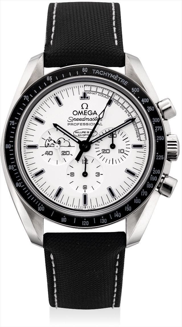 A very rare stainless steel limited edition chronograph wristwatch with ceramic bezel, enamel case back and Snoopy medallion, made to commemorate the 45th anniversary of Apollo XIII mission