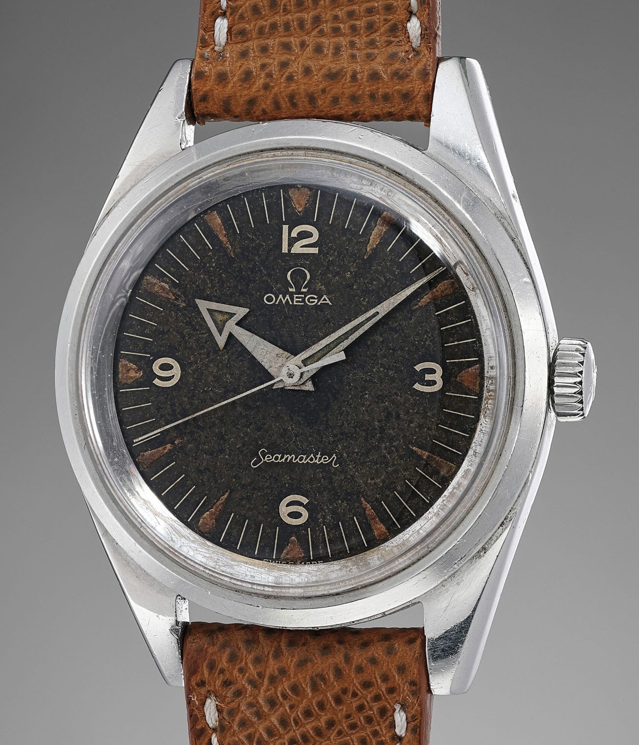 In overall good condition with light signs of military use and a beautiful matte dark chocolate tropical dial, the present watch still retains its original Omega crystal bearing the Omega logo on its centre. The hands and luminous plots have turned to an appealing light brown colour adding an even more vintage look to the watch. Very functional, the simplicity of its design with its beautiful broad arrow hands will please any enthusiasts of military issued watches. It is a rare treasure that will certainly delight and excite more than one.