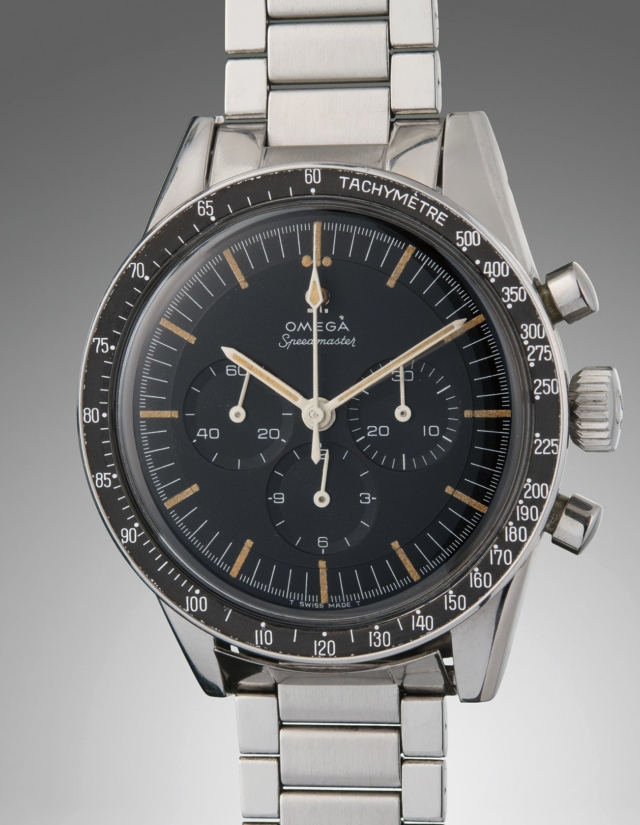 The historical importance of this reference is matched by this example’s immaculate condition – a completely unpolished case free of much of the wear and tear visible on other models, a bezel with little signs of aging, and a perfect matte black dial with visible steps and all the indicators of the correct reference. Even the bracelet is in perfect condition and likely original to the watch. This "Ed White" Speedmaster will captivate the imaginations of those who grew up watching great men and women risk everything to enter that next frontier: space.