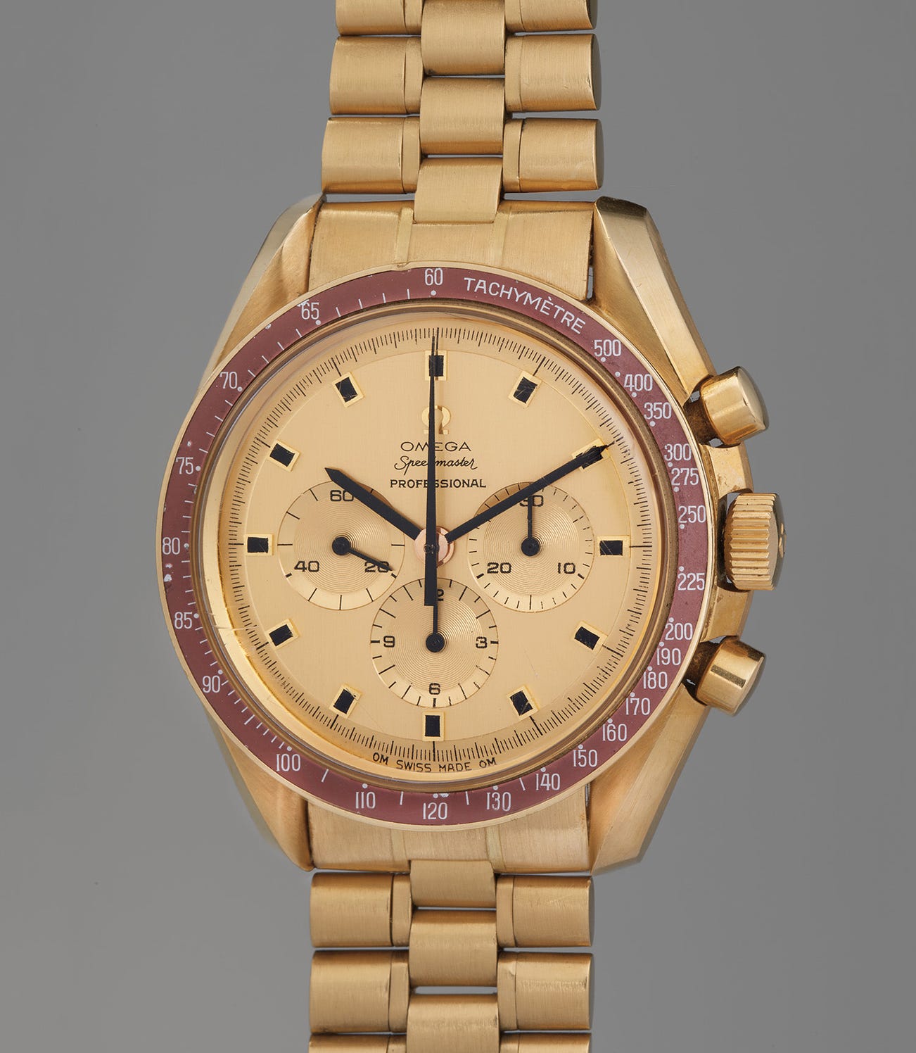 The reference 145.022 was released in 1969 to commemorate this historic event with the first two chronographs offered to the President and Vice-President of the United States, but were ultimately turned down for compliance issues. The watches numbered 3 through 28 were presented to NASA astronauts and officials, with watches 29 to 32 given to executives of Omega during a gala dinner in Houston in 1969. The watches 33 through 1000 were offered to the public, and like the present wristwatch, were engraved “The First Watch Worn on the Moon”. This year, to mark the occasion of the 50th anniversary of the moon landing, Omega re-released the watch in a modern, limited edition of 1,014 pieces in Omega’s all-new, proprietary Moonshine Gold yellow-gold alloy – all of which sold out.