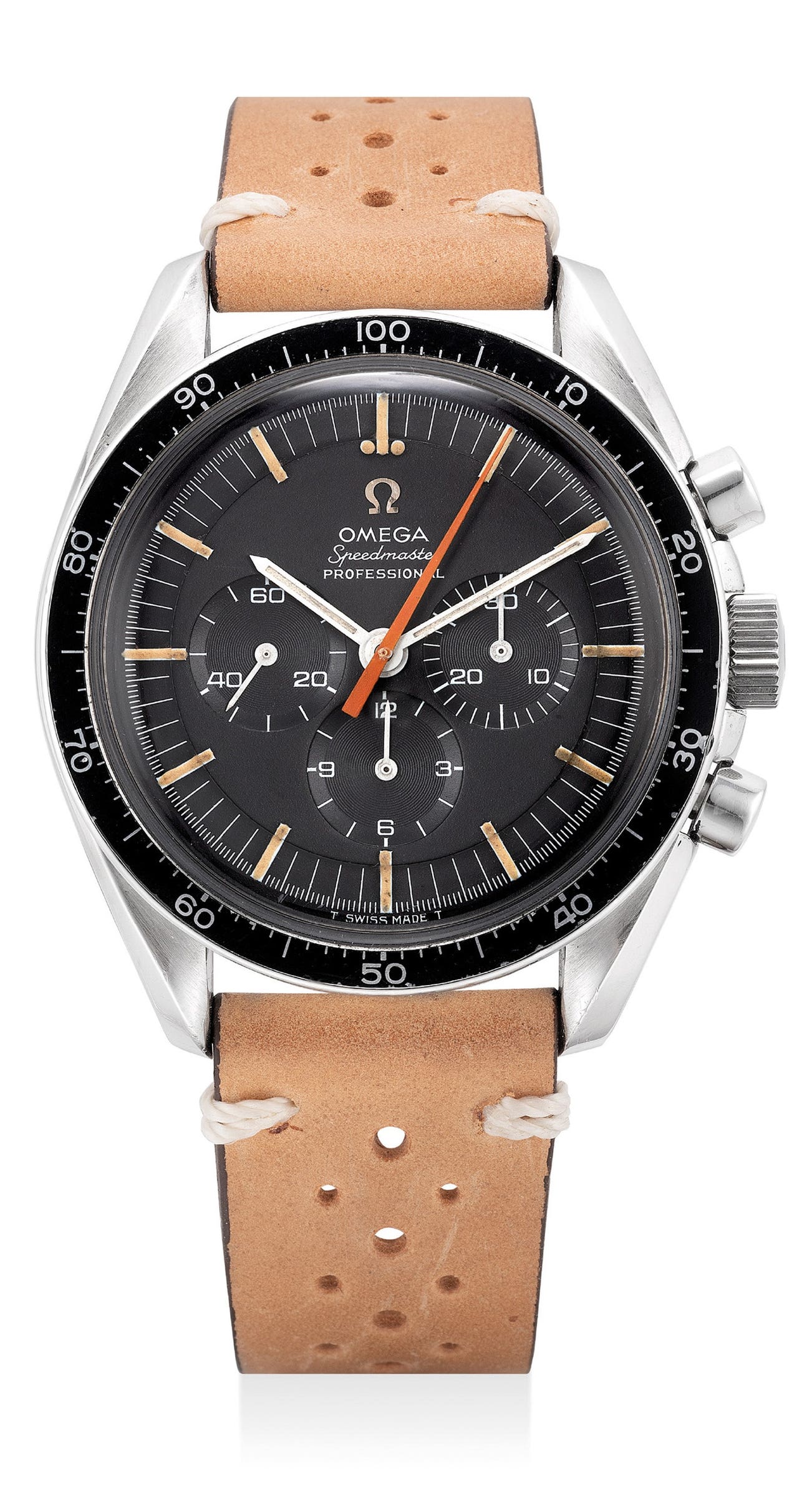 The present example is presented in attractive condition with a nice and clean dial featuring an orange chronographic hand and furthermore the serial number coincides with the range mentioned above. Adding to the attraction it is confirmed by an Omega Extract from the Archives indicating the orange chronographic hand with a production date of 10th June 1968 which is the correct period for the specific watch and it was delivered to Switzerland.