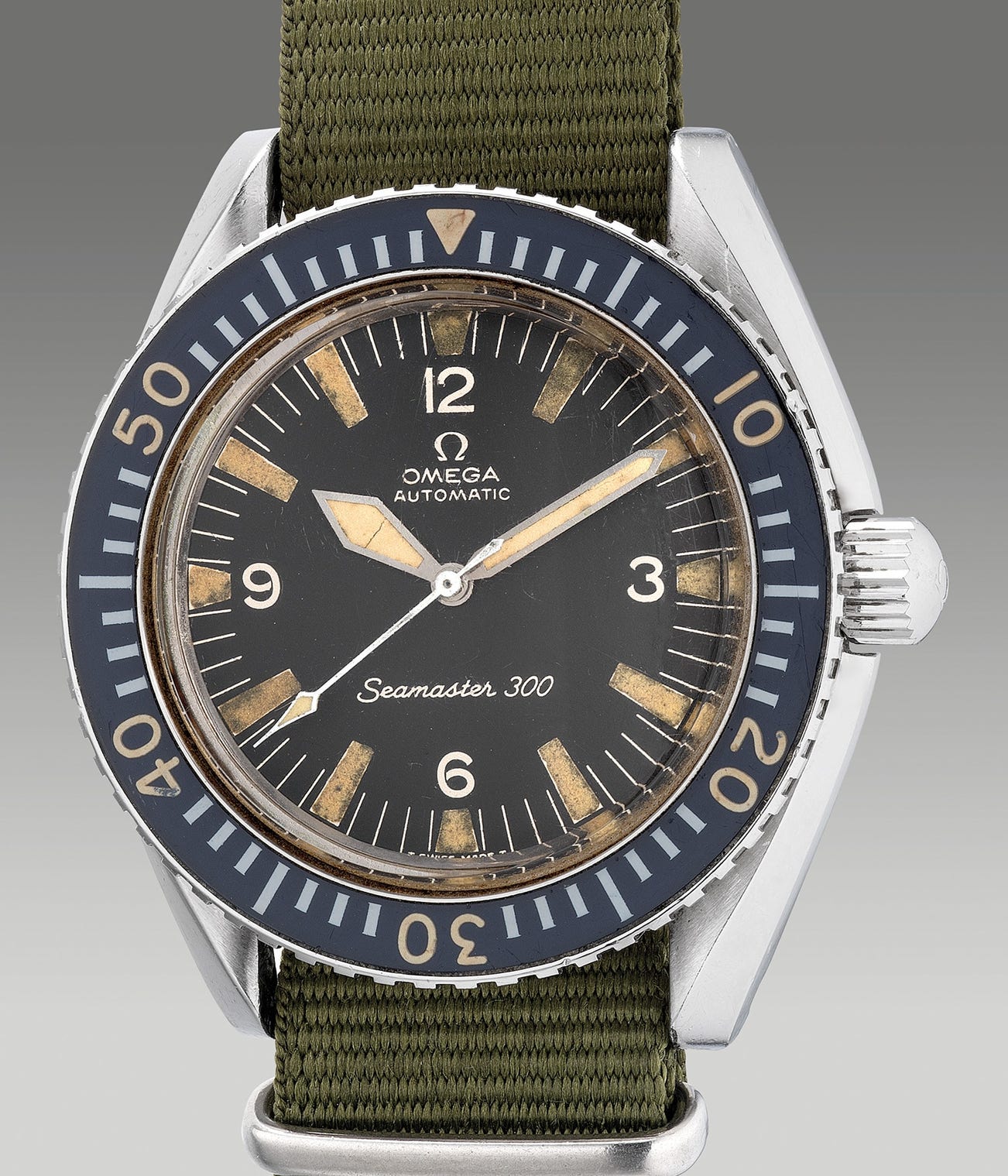 Equipped with either sword hands often seen on military watches or baton hands, the reference has many iterations during its production. The present example bears the production year of 1969, characterised by its typographic features on the bezel, sans serif font with flat top numerals on 3 and 5, as well as 5 minute interval tritium markers.