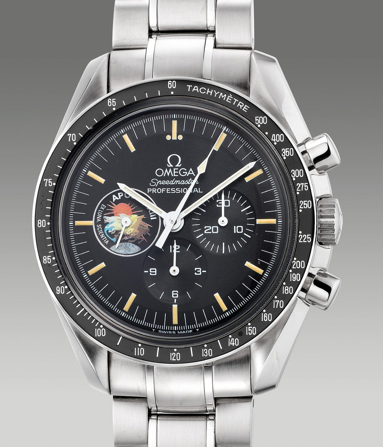 The present example numbered 818 of a limited series of 999 pieces, is preserved in immaculate condition and offered with its original accessories including the Apollo XIII mission badge. This is certainly an opportunity not to be missed by Speedy collectors to acquire such a symbolic timepiece of history.