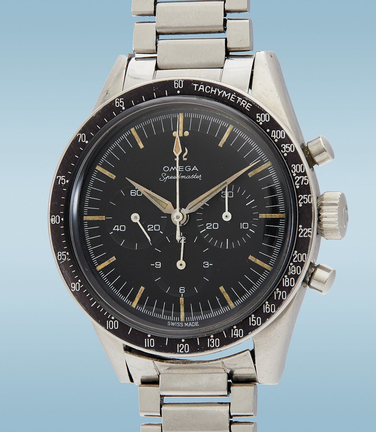 The Speedmaster was targeted for ‘active clientele’ solidifying its role as the official timekeeper of NASA, Olympics, and everyday sports enthusiasts, as well as flight navigators who completed missions for the US Navy. In exceptional, original condition and further accompanied with its purchase receipt, original hang tag, and photograph of the original owner wearing the watch, the present lot is a rare opportunity to own a timepiece that is part of Omega’s long history in the world of flight.