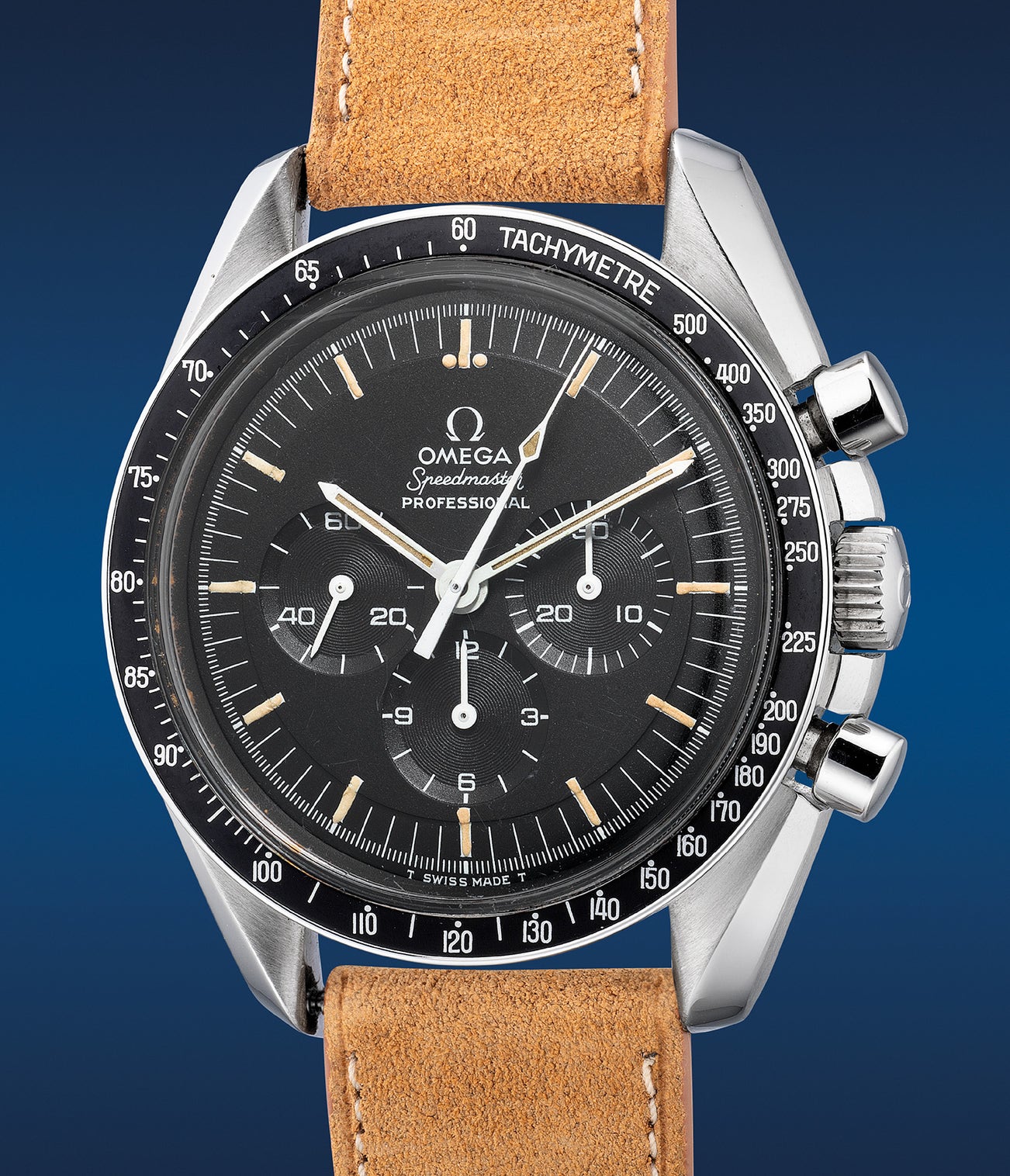 Early examples of the reference featured a caseback inscribed with the firm’s seahorse logo with later examples of the model bearing a caseback engraving of the moon landing. The reference was produced from 1969 until 1971. The present example features a rare variant of a caseback inscribed with the desirable mentioning of the Apollo XI 1969 mission, a similar style to the limited edition gold version. With very few examples of resurfaced, examples that features these casebacks were originally delivered to Japan. Boasting and well-preserved overall state, the case is wonderfully crisp and features a bezel that is nice and clean, which is further complemented by a flawless dial.