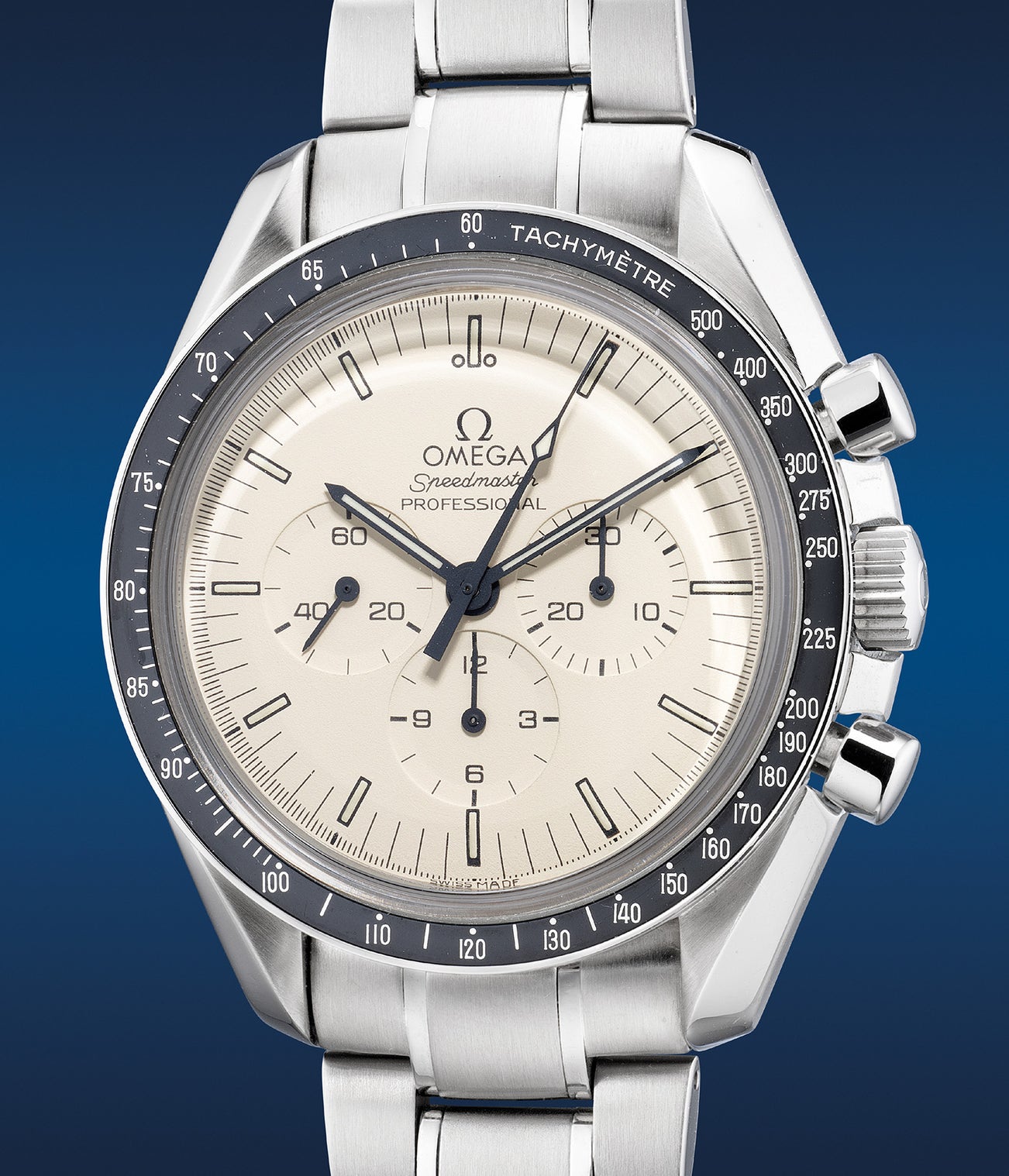 The present Speedmaster Professional ref. ST345.0818 was released in 1997 as a limited edition of 500 pieces made specifically for the Italian market. One of the most attractive and adored limited editions created by the firm, it features an “Albino” cream coloured dial paired subtly with grey accents. In addition to the rare off-white dial, Omega used Luminova, not tritium, for the hands and hour markers, which was a first for the brand. Additionally, the markers were outlined in crayon grey for contrast, which was the reverse of a similar feature seen on Omega’s Snoopy series. Featuring yet another unique feature was the incorporation of a sapphire crystal on the dial side and the caseback allowing the wearer to admire the cal. 1863.