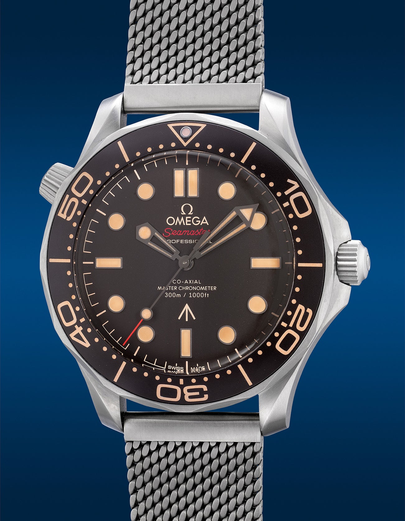 In 2021, Omega released the Seamaster Diver 300M 007 Edition, alongside Daniel Craig’s final Bond appearance in No Time to Die. Featuring a grade 2 titanium case with a brown bezel insert, the matte brown military style dial with fauxtina luminous material gives the watch a vintage appeal. For the first time, the 007 designation has been kept subtle and no longer featured on the dial and only engraved on the caseback. Paired exquisitely with a mesh bracelet with a practical folding deployant clasp, it is also accompanied by an additional NATO strap. Powering the timepiece is the firm’s Co-Axial cal. 8806 in-house movement.