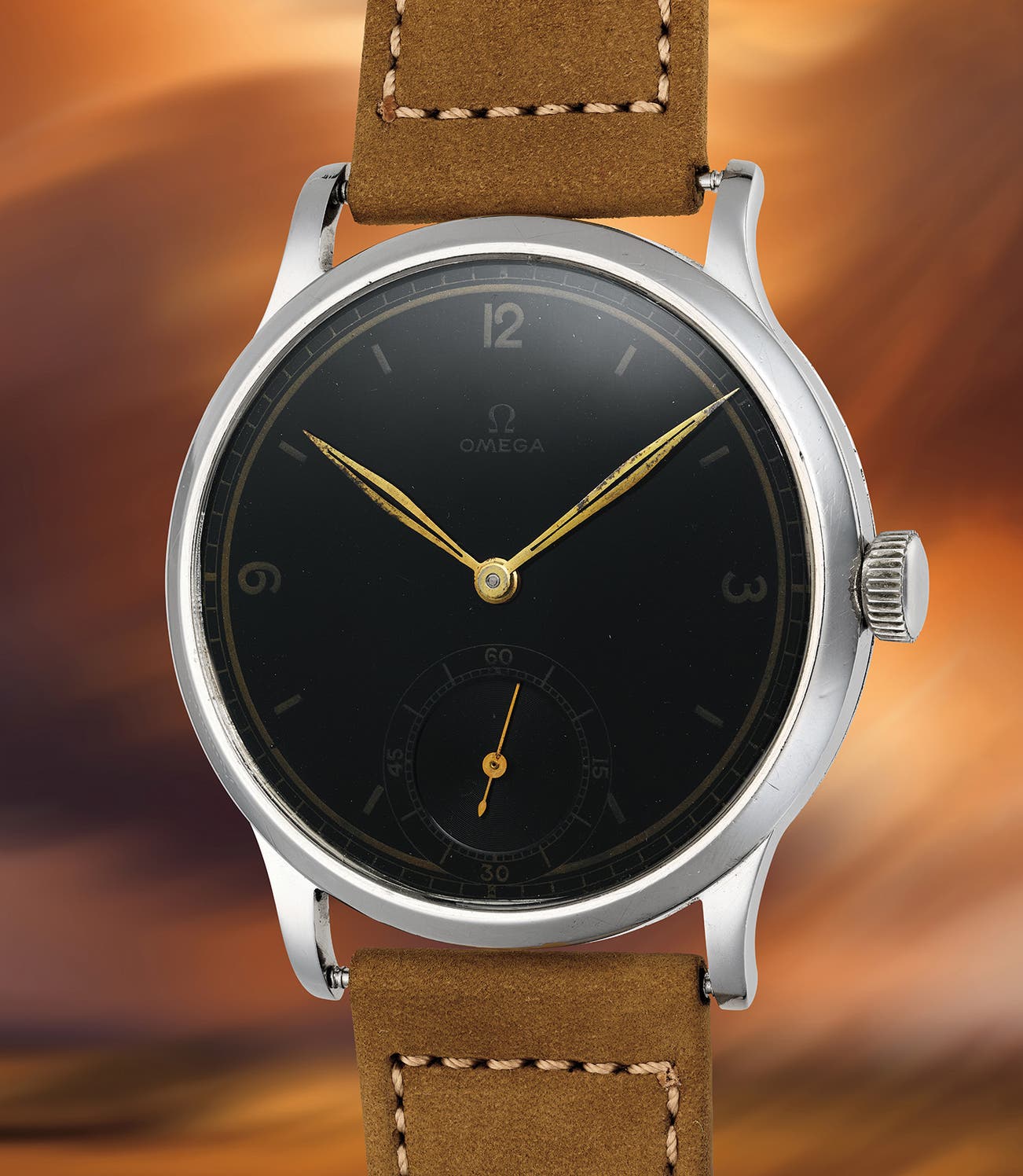 Elevating the present watch’s importance is the never-before-seen lacquered black dial, remaining beautifully preserved and highly glossy. The condition of the case is equally impressive, with minimal signs of wear considering its age and remarkably, in our opinion, having never been polished. Offered for the first time publicly by an important collector, the watch will appeal to all connoisseurs due to its exceptional rarity, outstanding quality, and contemporary dimensions.
