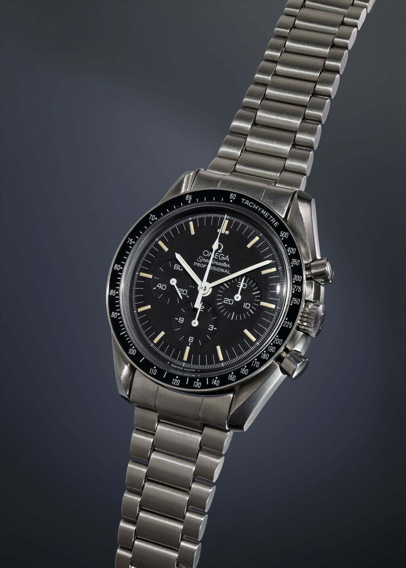 The case is in immaculate condition, and interestingly, the movement number is repeated on the underside of the bottom left lug. It is an important and extremely rare Speedmaster Professional model that will certainly impress any enthusiast.