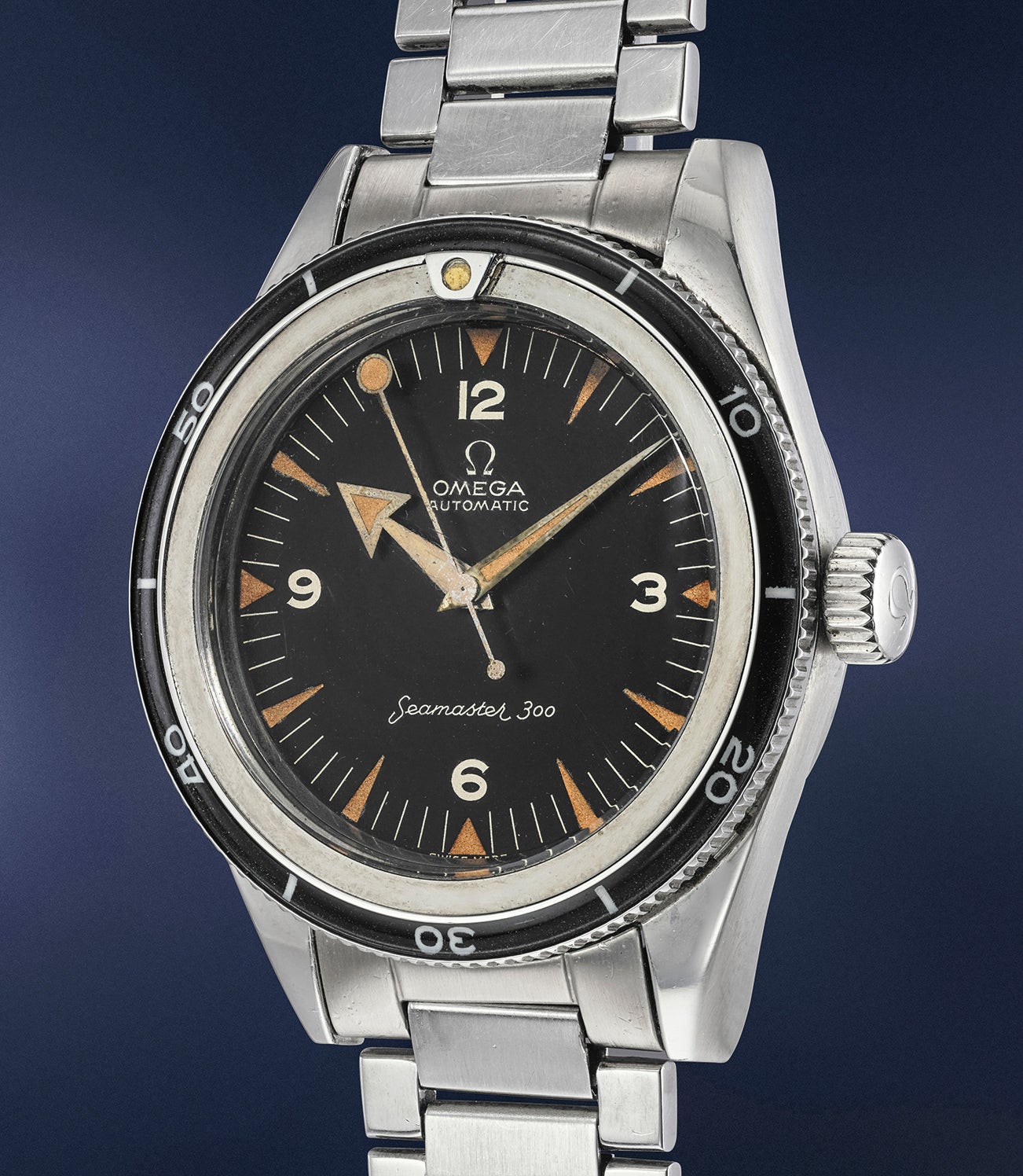 The present Seamaster 300, reference CK 2913-3 stands out, not only because it features the iconic “Broad Arrow” and “Lollipop” hands - which in many instances get lost to various services over the years - but also thanks to its very appealing condition especially of dial and bezel: without a mark or scratch on its surface, the dial is virtually pristine, the only hint of the passage of time being the color of the luminous material which is now a strong camel/chestnut hue.