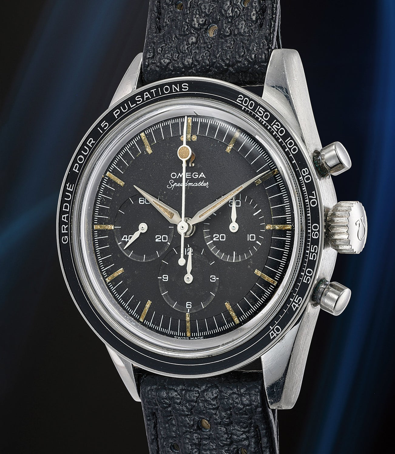Reference 2998, released in 1959 was the immediate successor to the ref 2915. Early examples like the present watch used the famed Lemania caliber 321, which is revered amongst watch enthusiasts for its robust chronograph mechanism. The manual wound caliber was used by Omega from 1946-1968, and while small in size at 27mm diameter, it offered optimal performance and reliability.