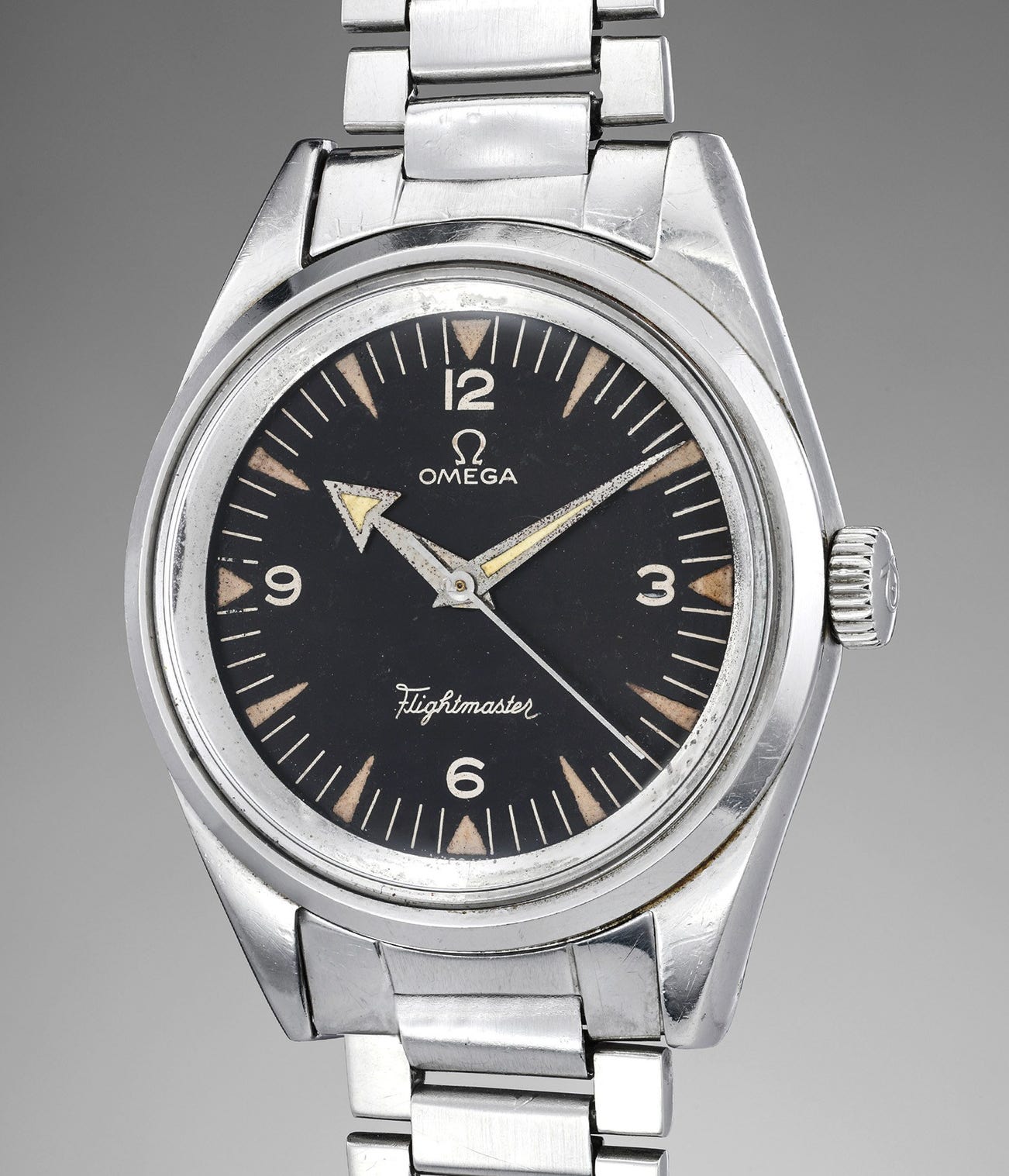 The present timepiece was delivered to the Peruvian Air Force, or “Fuerza Aérea del Perú", whose initials FAP are engraved on the caseback and confirmed by Omega's Extract from the Archives. During the 1960s and 1970s, the Peruvian Air Force commissioned brands such as Omega and Rolex to create watches for their personnel.