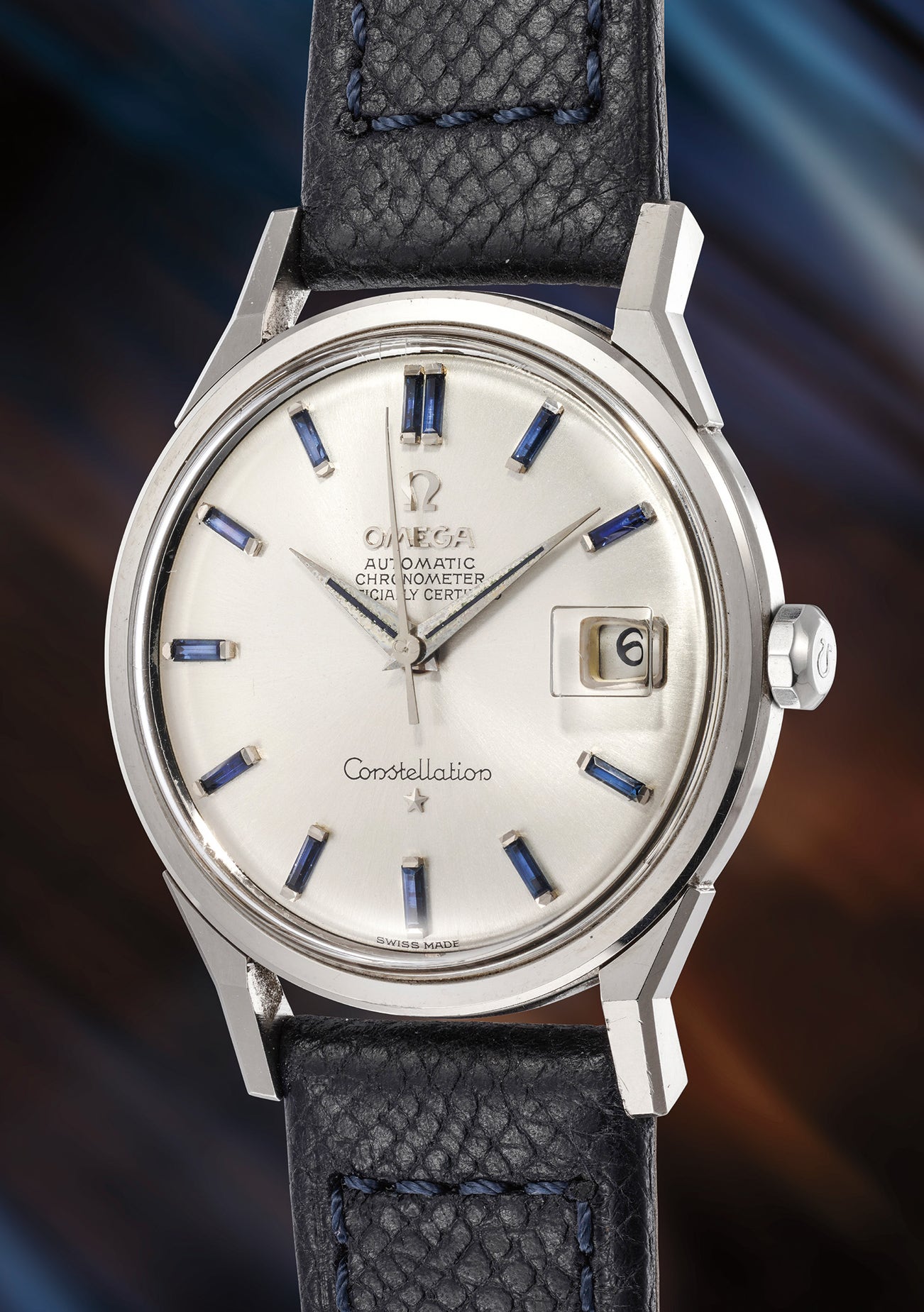 Launched in 1952, the Omega Constellation was considered as one of the most precise and reliable wristwatches at the time. Since its initial release, the Constellation remains as one of the firm’s flagship models, still in production till date. Encased in an elegant 34.5mm diameter case, the present watch is a wonderfully executed specimen with sculpted lugs. However, what sets the present watch apart from the ordinary is the presence of the baguette sapphire hour markers on the dial.