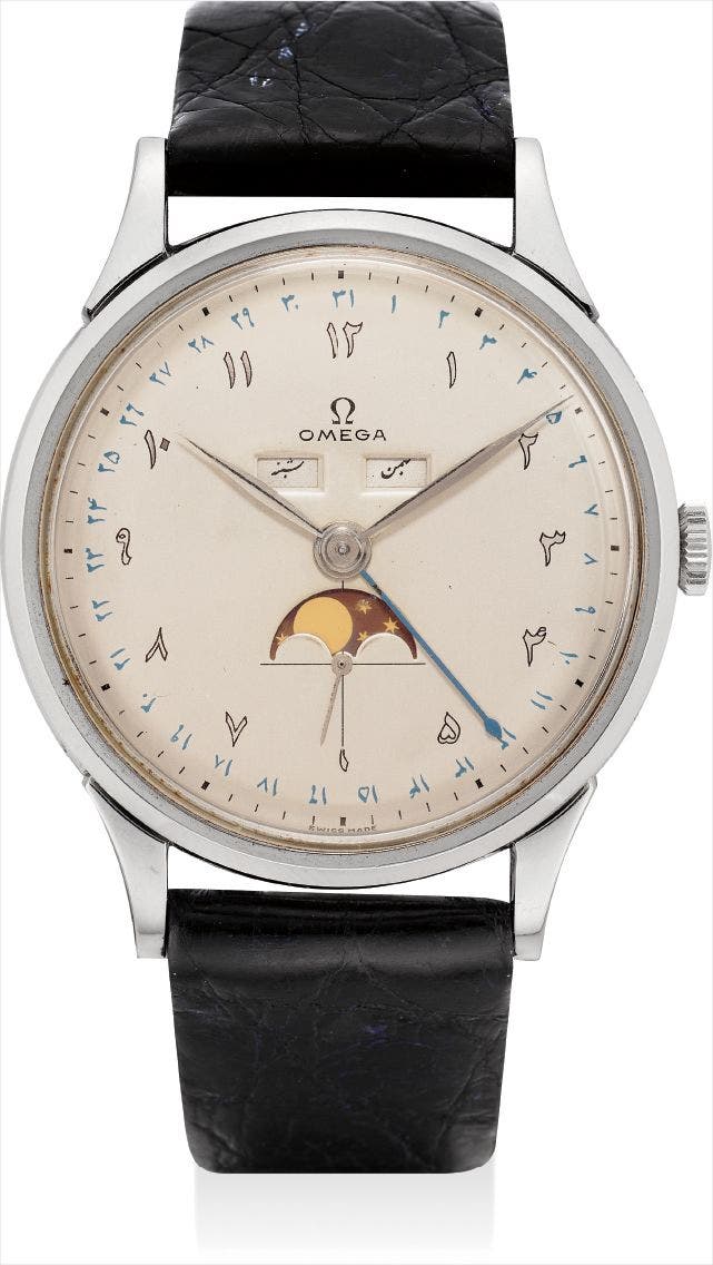 What further enhances the rarity of this Omega is the Arabian-Indic numerals and calendar that is easily understood by all Arabian countries. Seldom do such watches appear at auction or even listed in literature, this bespoke Omega is a highly collectible wristwatch.