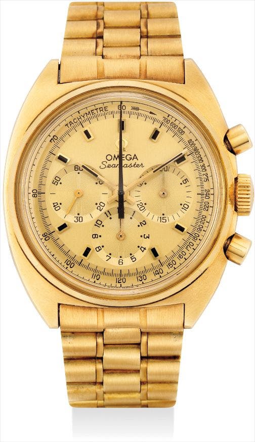 A rare yellow gold chronograph wristwatch with bracelet
