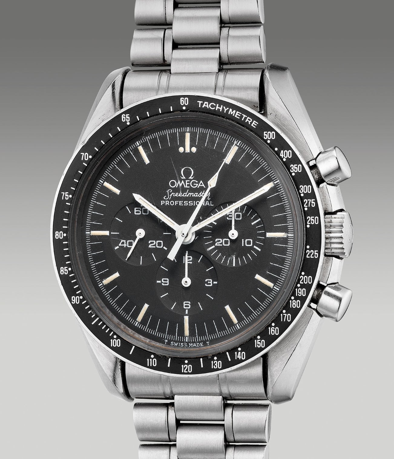 The present example features the correct bezel insert with “Tachymeter” in big writing with no accents as well as a tritium dial with the correct bracelet stamped “812” and clasp stamped “1479”. Accompanied by the original warranty and Extract from the Archives from Omega, this is a truly all original example.