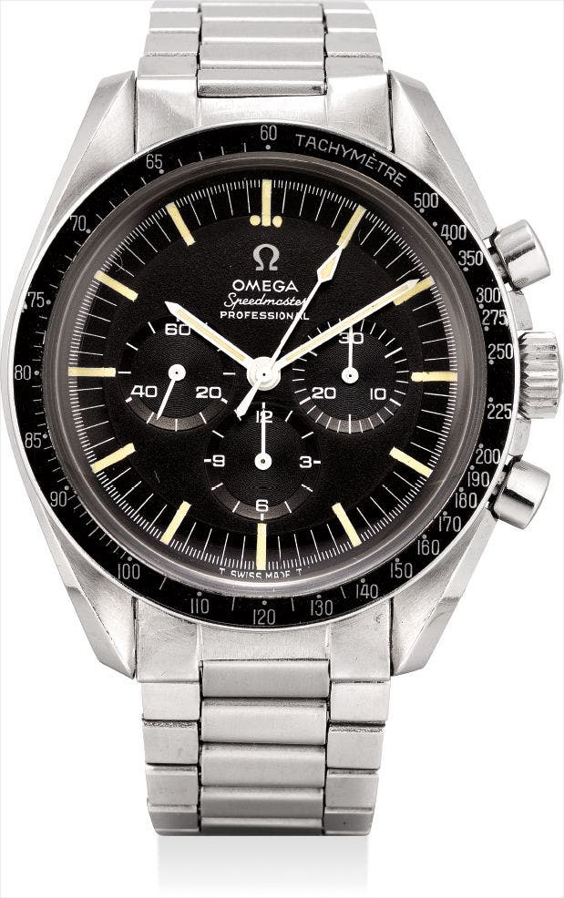 The present watch is an attractive example of this collectible timepiece, with a dial that has aged nicely, and the white numerals have turned a crème colour. The case retains its strong proportions and the ‘lyra’ style lugs remain sharp. A watch that is both interesting from its historical perspective in space, and a sporty model, the Speedmaster Professional is the perfect watch for everyday wear.