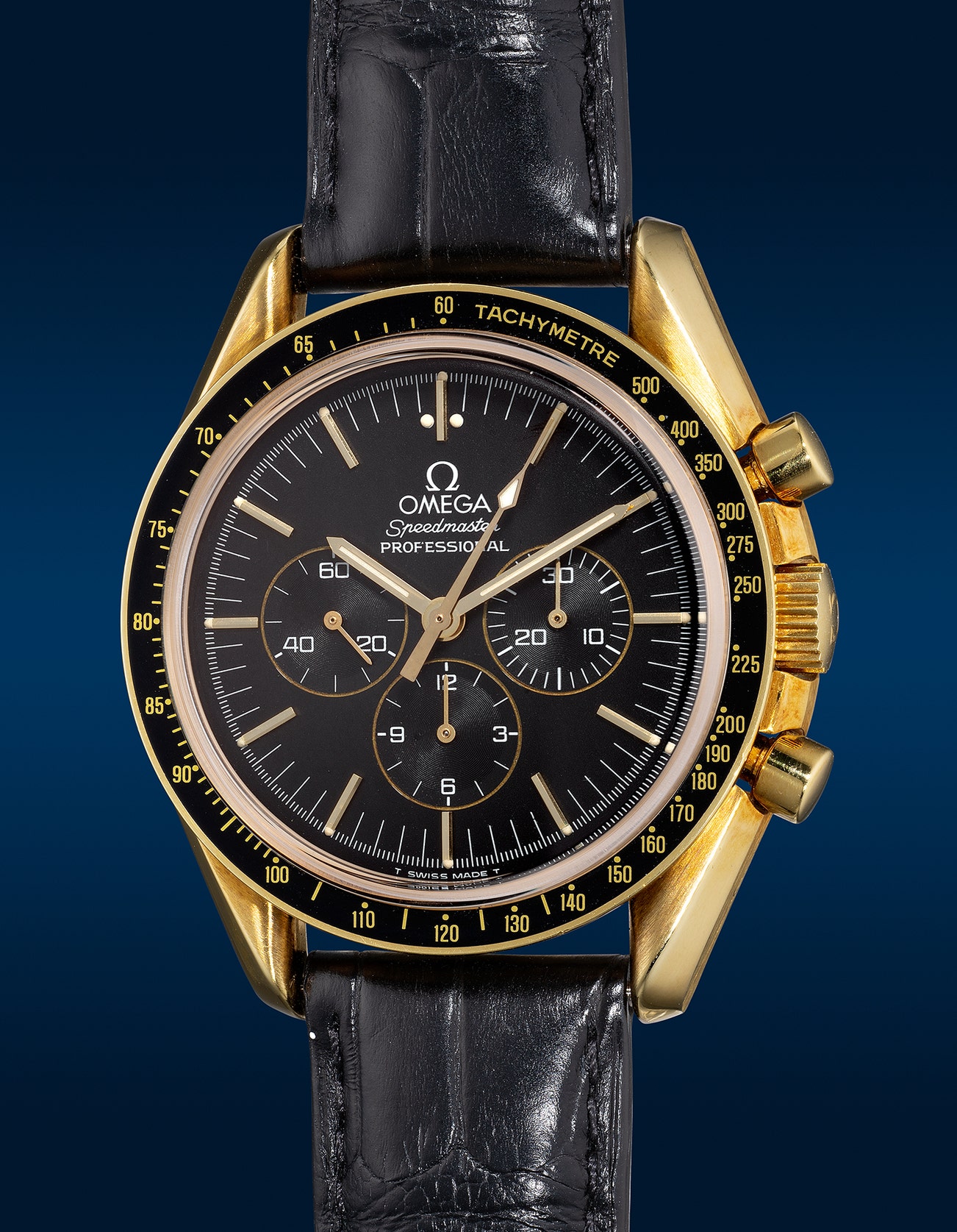 - Offered in overall excellent condition and further complimented by its full set of accessories, this handsome gold Speedmaster is one for the discerned Speedy fan to add to their collection of rare Speedmasters.