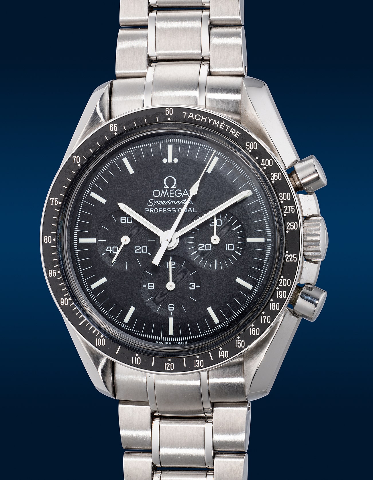 A fine and attractive limited edition stainless steel chronograph wristwatch with bracelet, warranty and presentation box, numbered 3,476 of a limited edition of 9,999 pieces, made to commemorate the 30th Anniversary of the Apollo 11