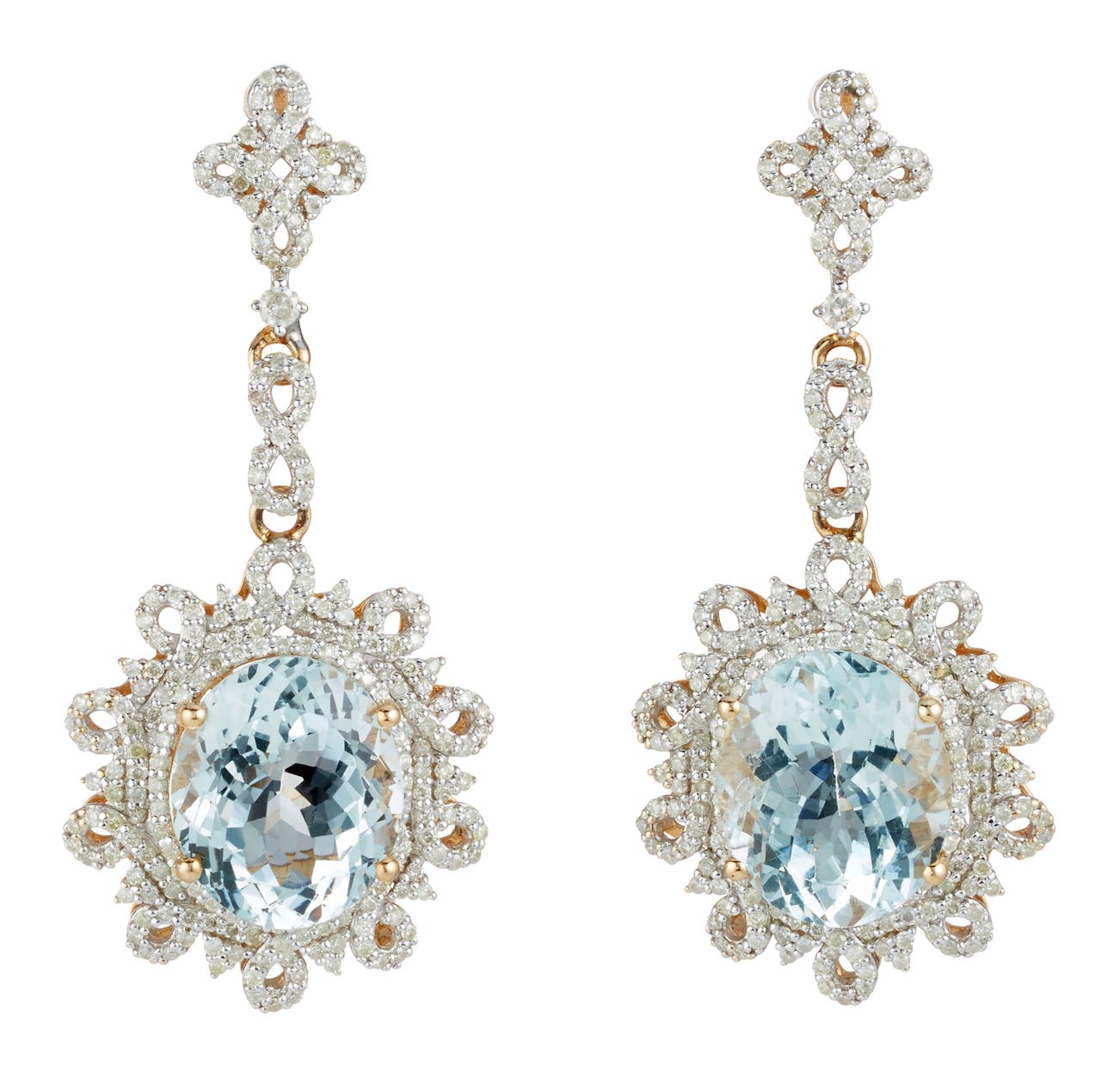 A Pair of Aquamarine, Diamond and Gold Earrings